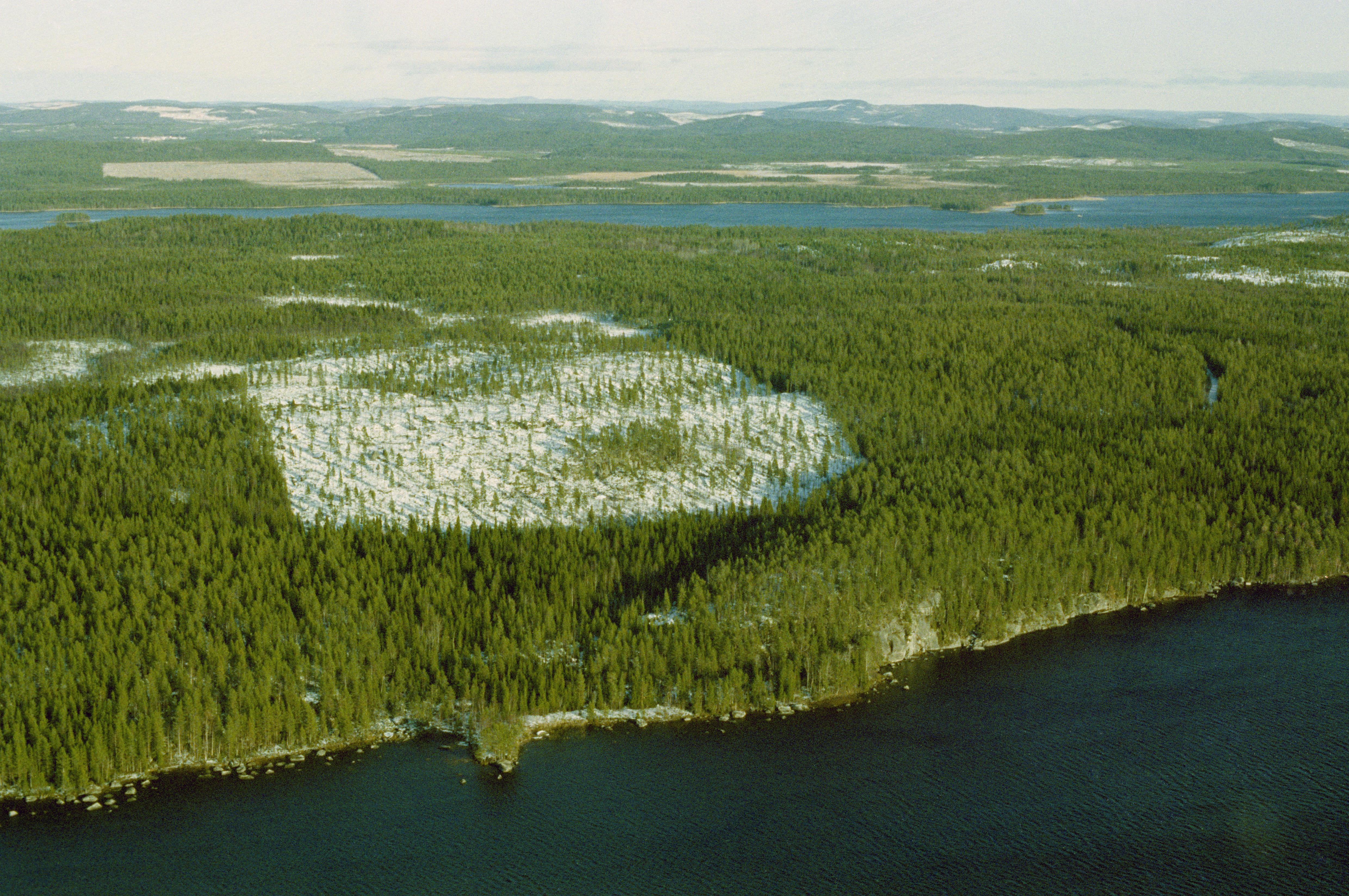 Beskrivning: Fångsjön, nordöstra området. Vid stranden till höger under bildens mitt Fångsjöberget med hällmålningar RAÄnr Ström 332:1-3. Åsberget vid bildens mitt. Malmsjön i bildens övre del. Bilden är tagen mot (väderstreck): ONO