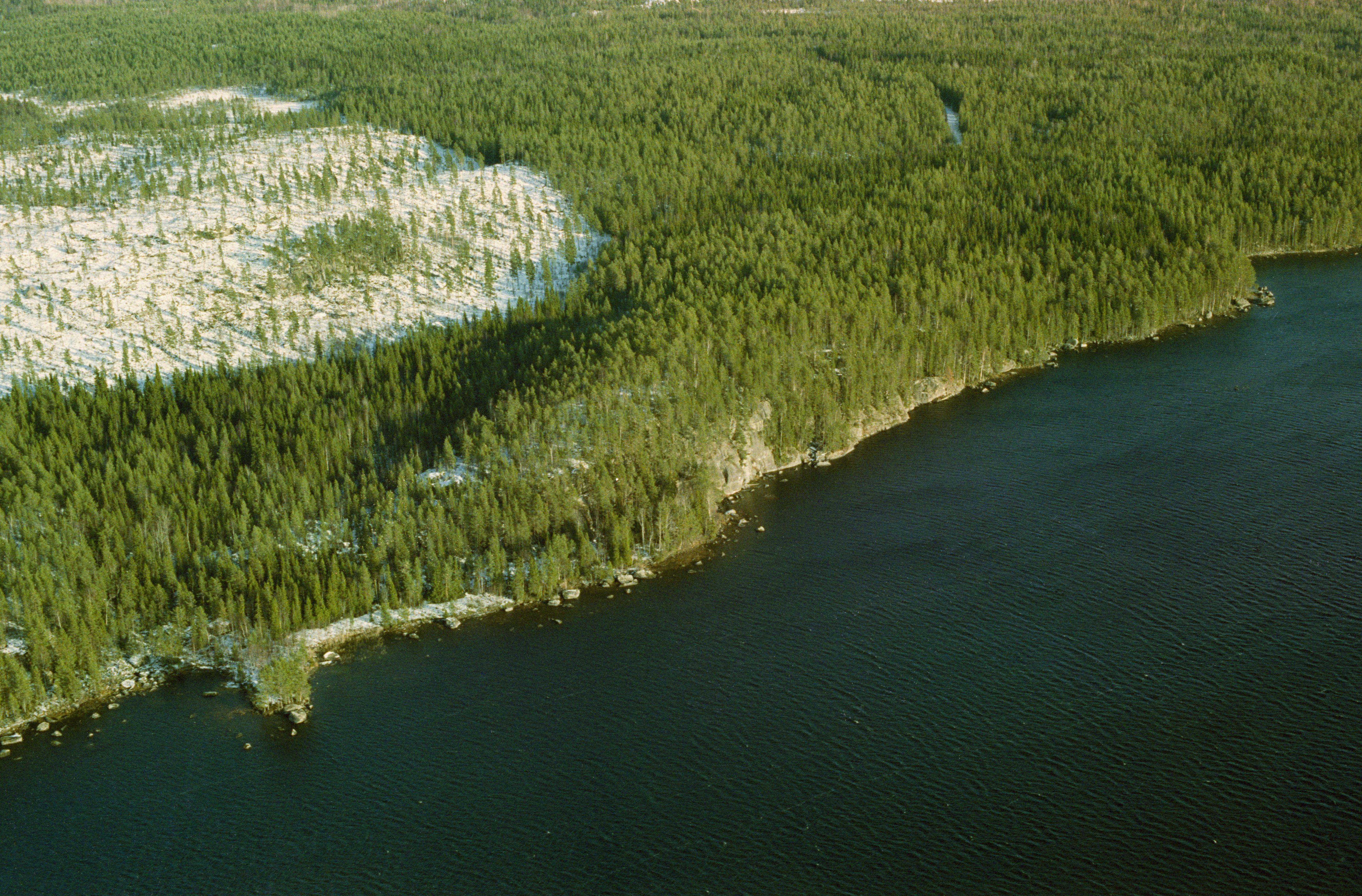 Beskrivning: Fångsjön, nordöstra området. Vid bildens mitt Fångsjöberget med hällmålningar RAÄnr Ström 332:1-3. Åsberget i bildens övre del. Bilden är tagen mot (väderstreck): ONO