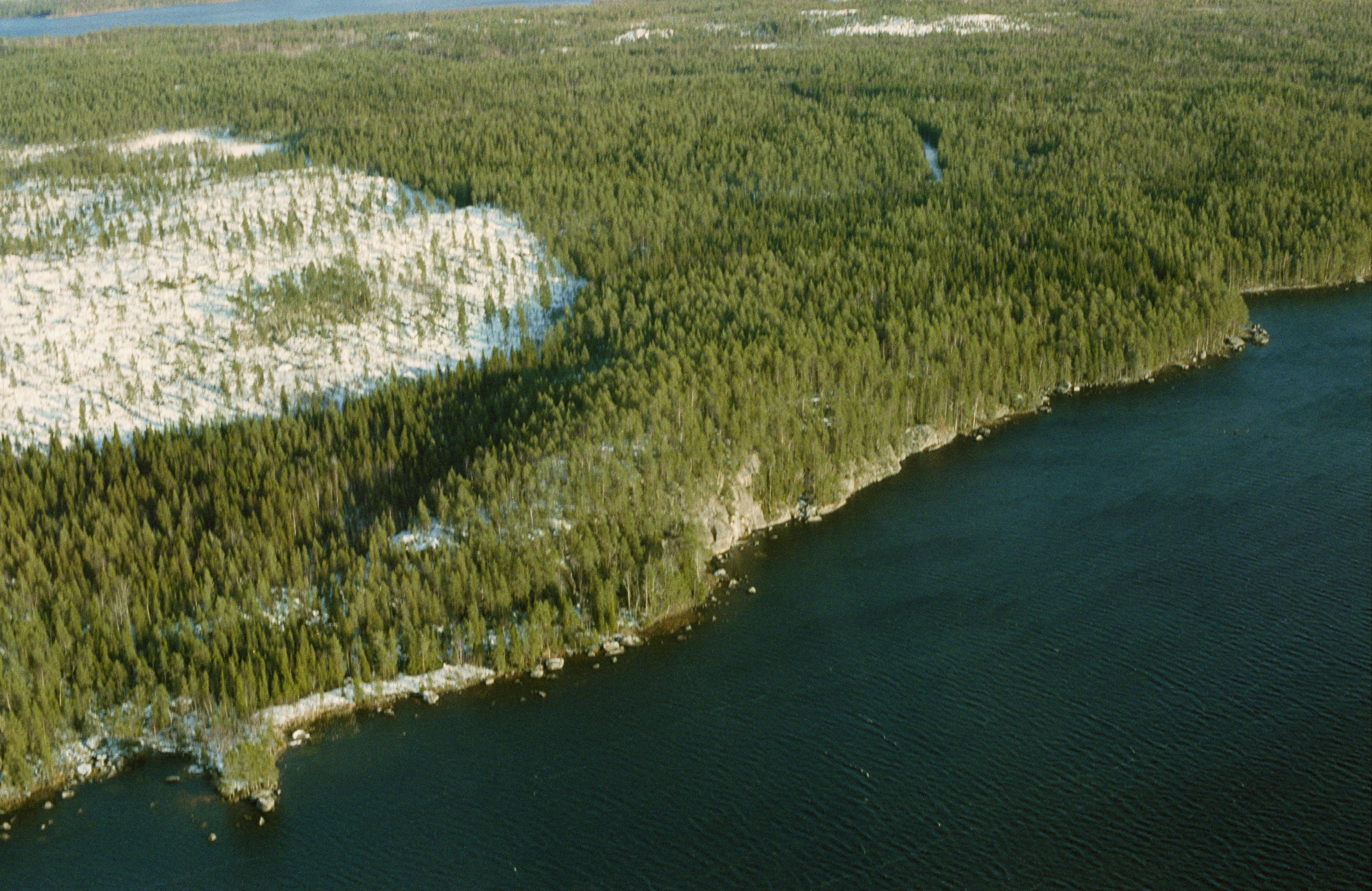 Beskrivning: Fångsjön, nordöstra området. Vid bildens mitt Fångsjöberget med hällmålningar RAÄnr Ström 332:1-3. Åsberget i bildens övre del. Malmsjön skymtas uppe i bildens vänstra kant. Bilden är tagen mot (väderstreck): ONO
