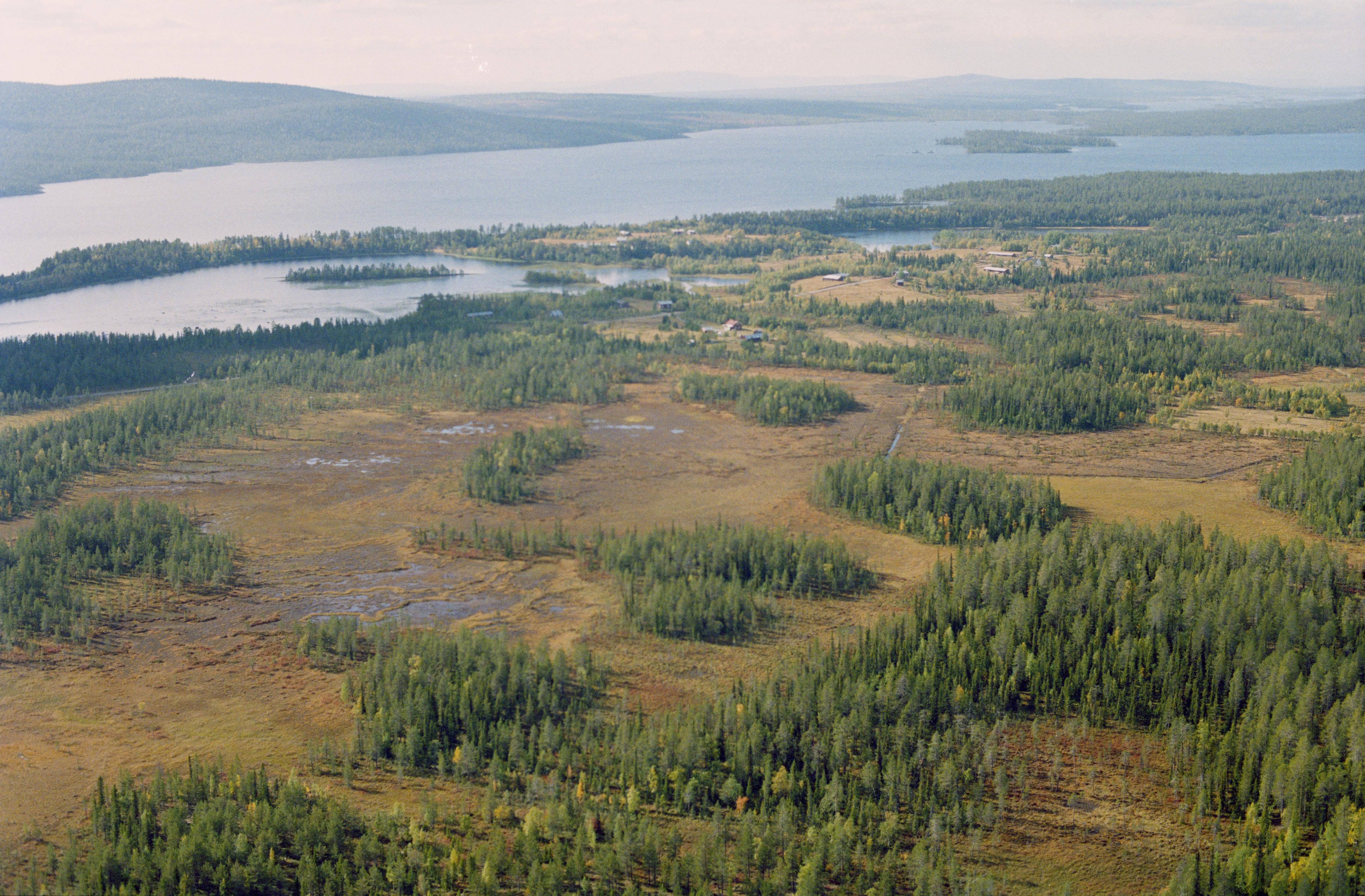 Beskrivning: Svannäs by vid sjön Gublijaure (Gubblehávrre). Uppe till höger Storstenudden med härd RAÄnr Arjeplog 1241:1, boplatser Arjeplog 485:1, 1229:1-4, 1233:1, m.fl. Bilden är tagen mot (väderstreck): VSV