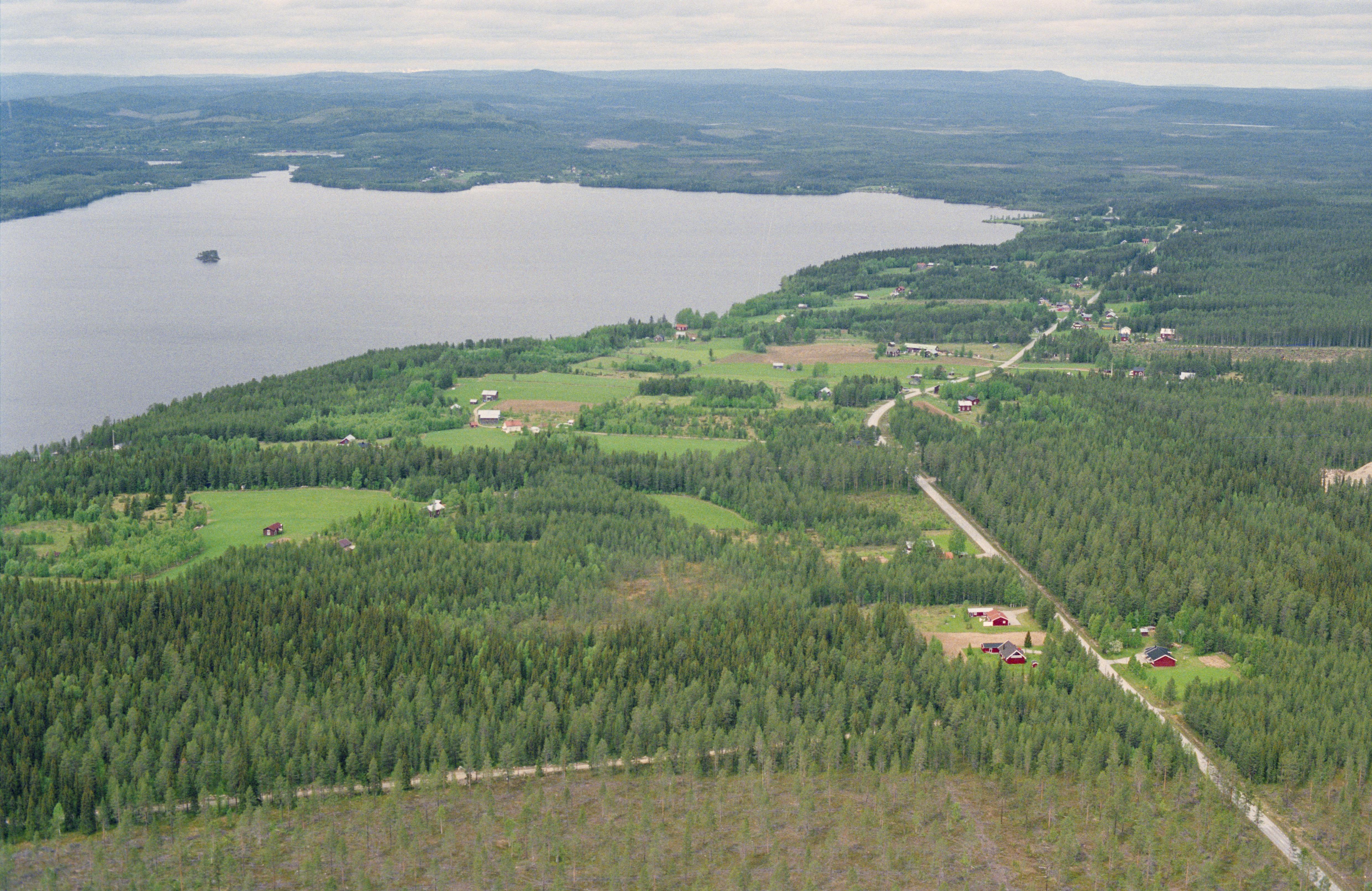 Beskrivning: Laiksjö (Laatjoe) by vid Laiksjön. Till höger om bildens mitt husgrund RAÄnr Dorotea 40:1 i Laiksjö by. På Risnäset vid stranden i bildens övre kant fyndplats RAÄnr Dorotea 42:1. Bilden är tagen mot (väderstreck): N