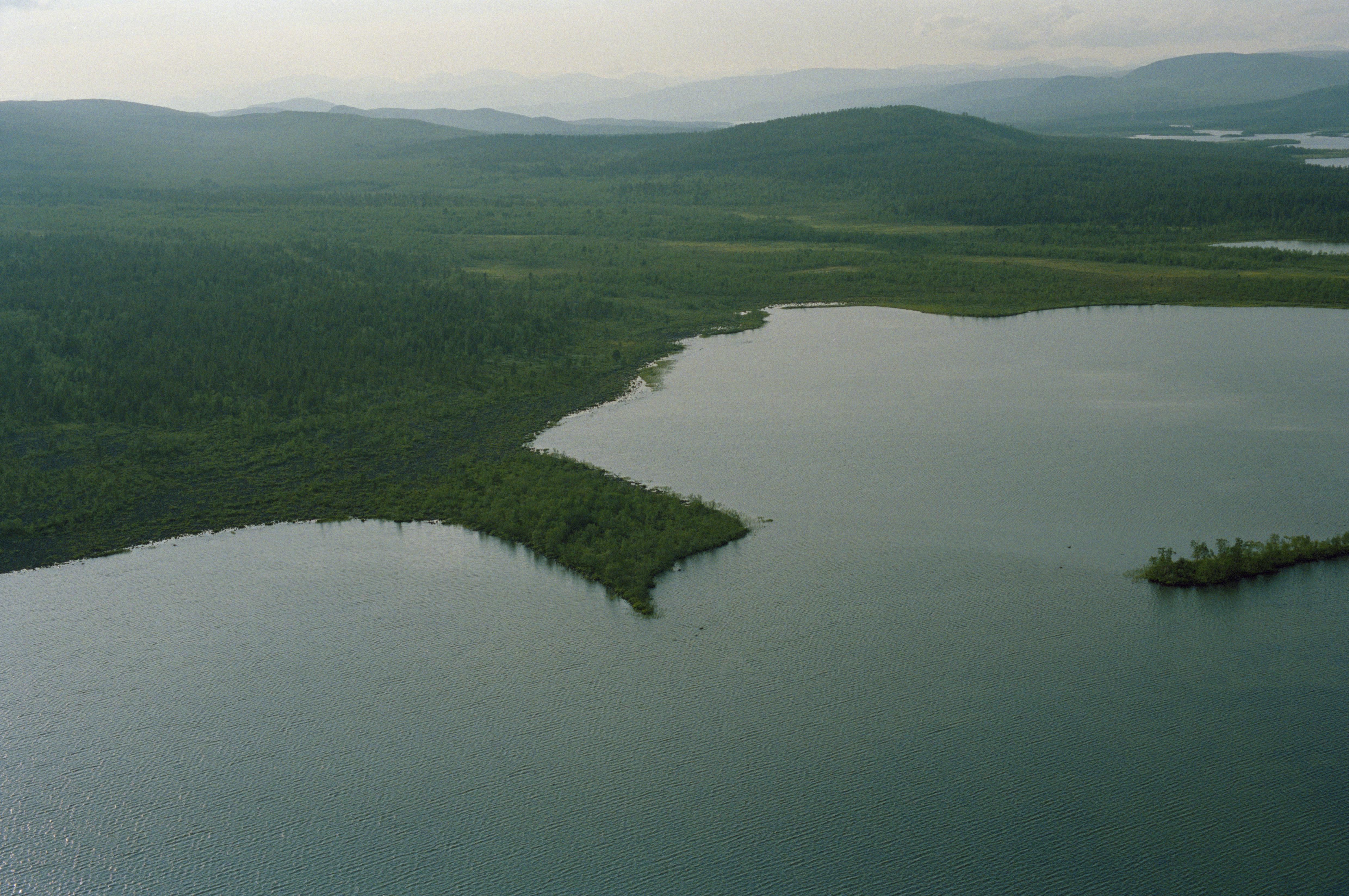 Beskrivning: Två samiska offerplatser i området Haltiosaari i Saivorova by vid sjön Isosaivo. På udden i bildens mitt offerplats RAÄnr Gällivare 73:1 och på holmen i bildens högra kant offerplats Gällivare 97:1. Bilden är tagen mot (väderstreck): NV