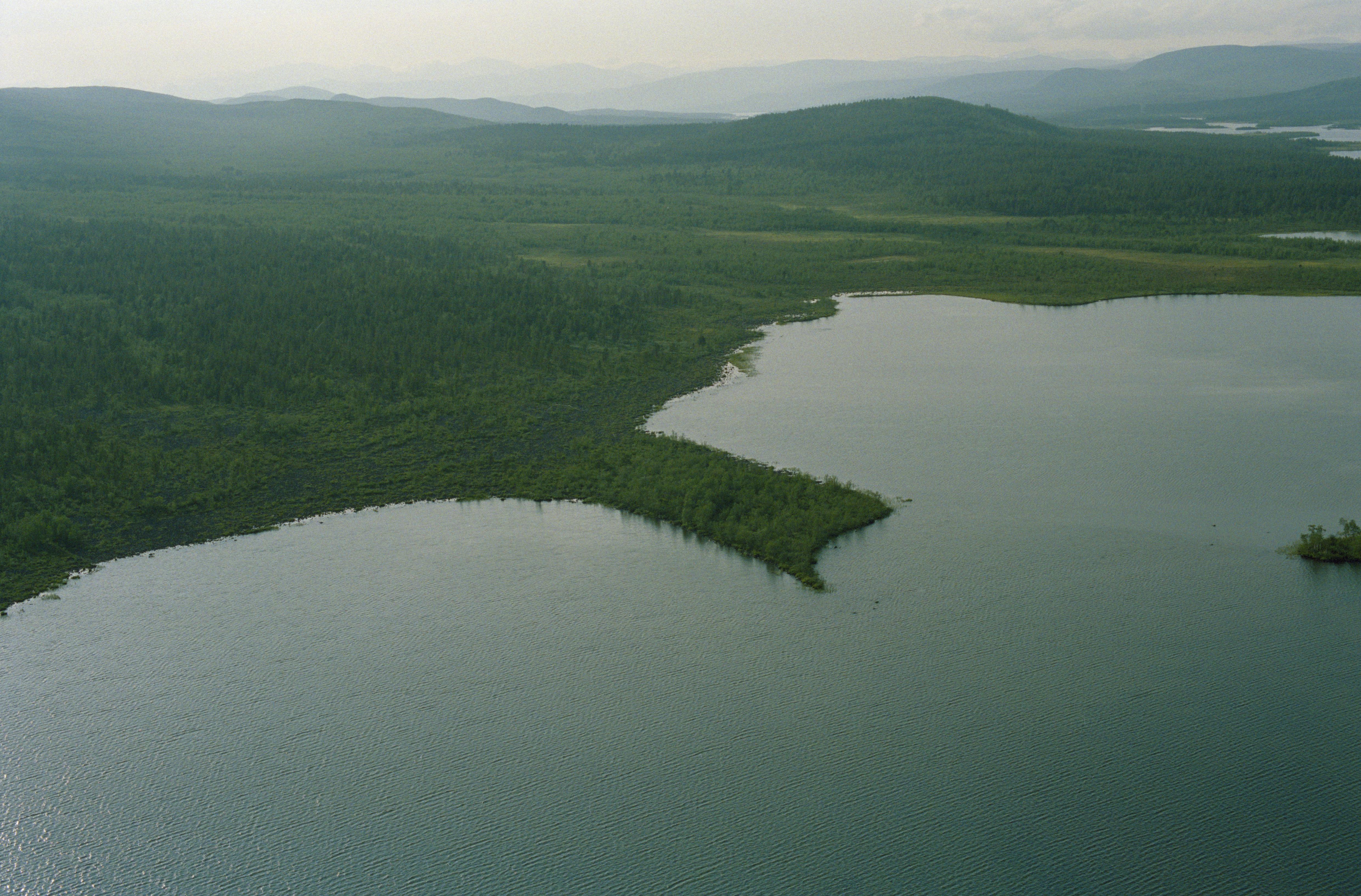 Beskrivning: Två samiska offerplatser i området Haltiosaari i Saivorova by vid sjön Isosaivo. På udden i bildens mitt offerplats RAÄnr Gällivare 73:1 och på holmen i bildens högra kant offerplats Gällivare 97:1. Bilden är tagen mot (väderstreck): NV