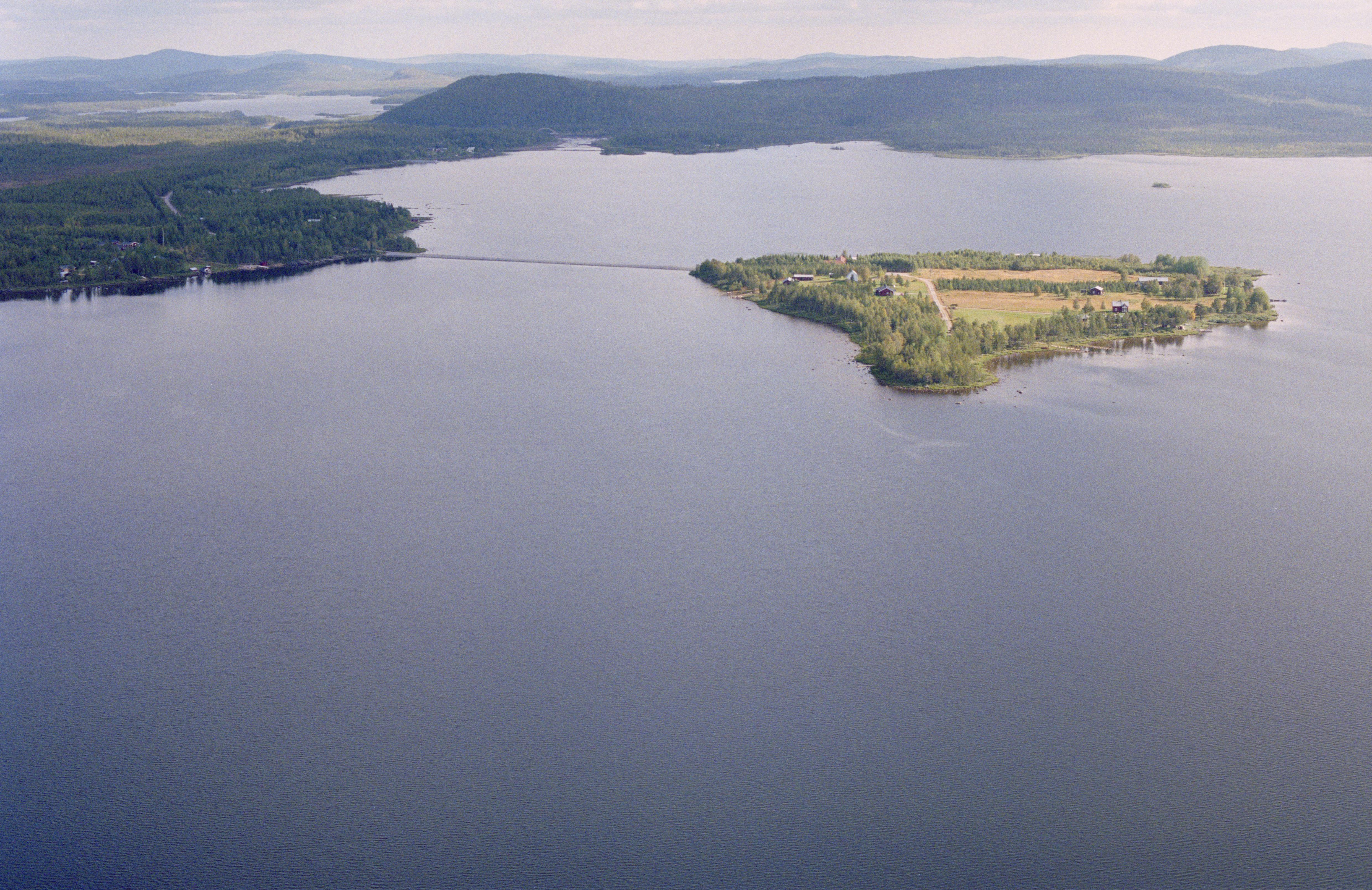Beskrivning: Purkijaur by vid sjön Purkijaur (Burgávrre). Till höger om bildens mitt Purkijaurholmen (Burgávresuoloj) med bygdegård och på södra stranden boplats RAÄnr Jokkmokk 151:1. Bilden är tagen mot (väderstreck): OSO