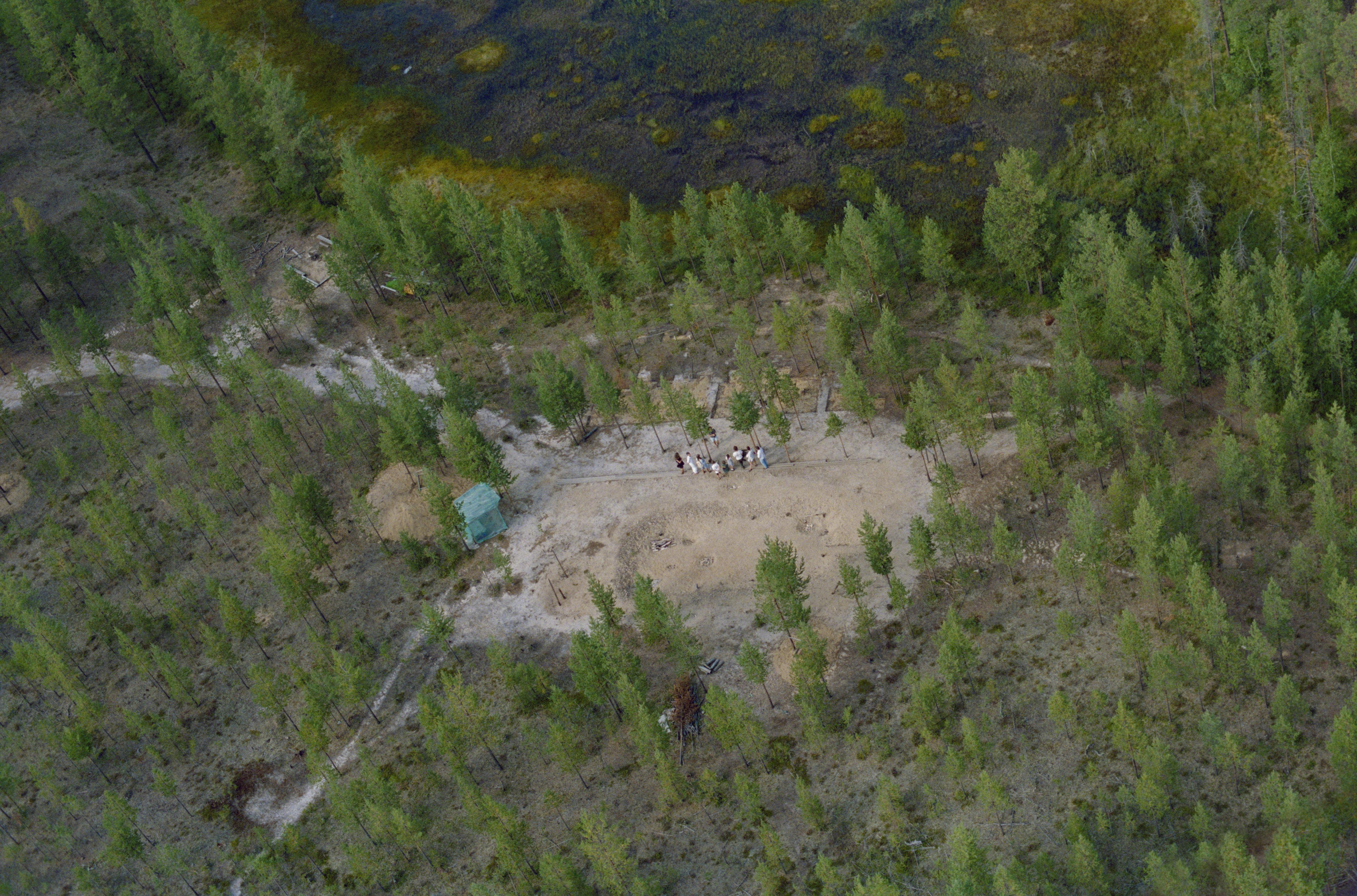 Beskrivning: Besöksgrupp vid Vuollerimboplatsen, en stenåldersboplats med hyddbotnar och fångstgrop RAÄnr Jokkmokk 1292:1-2 norr om tätorten Vuollerim (Vuolleriebme). Vid boplatsen härd RAÄnr Jokkmokk 4935 och 4936. Bilden är tagen mot (väderstreck): N