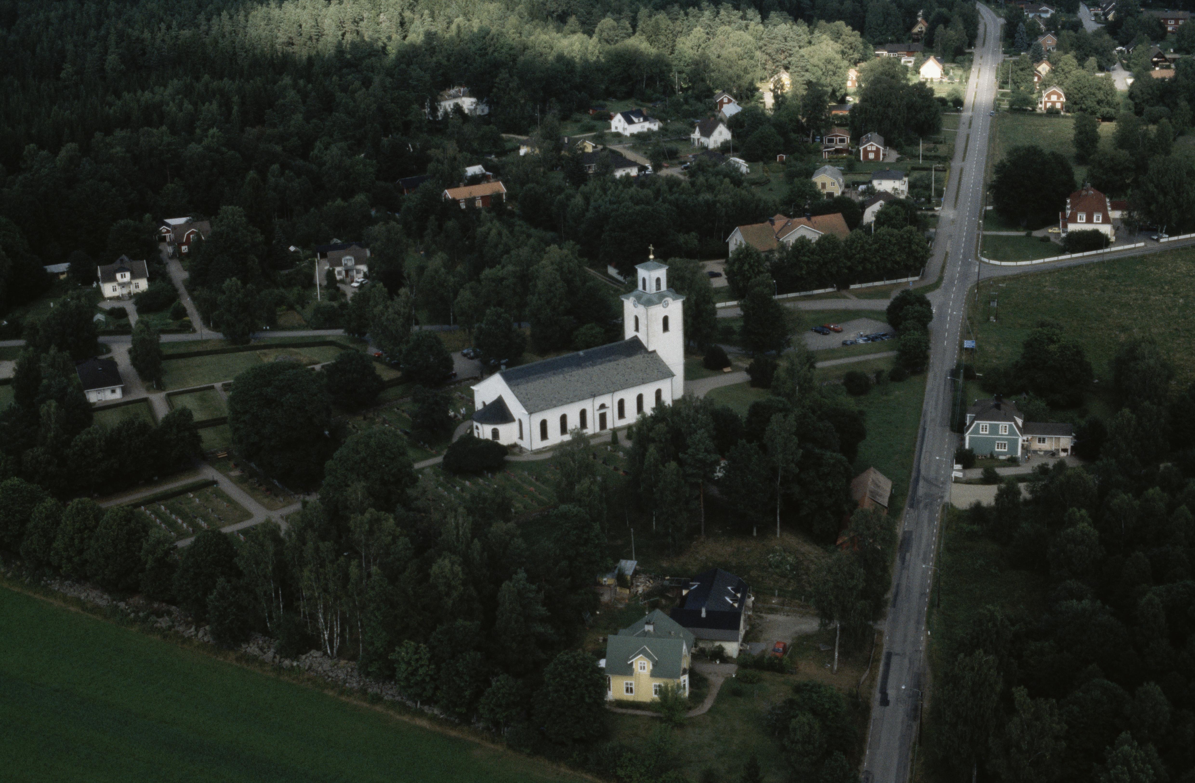 Beskrivning: Öja kyrka och kyrkby. Bilden är tagen mot (väderstreck): ONO