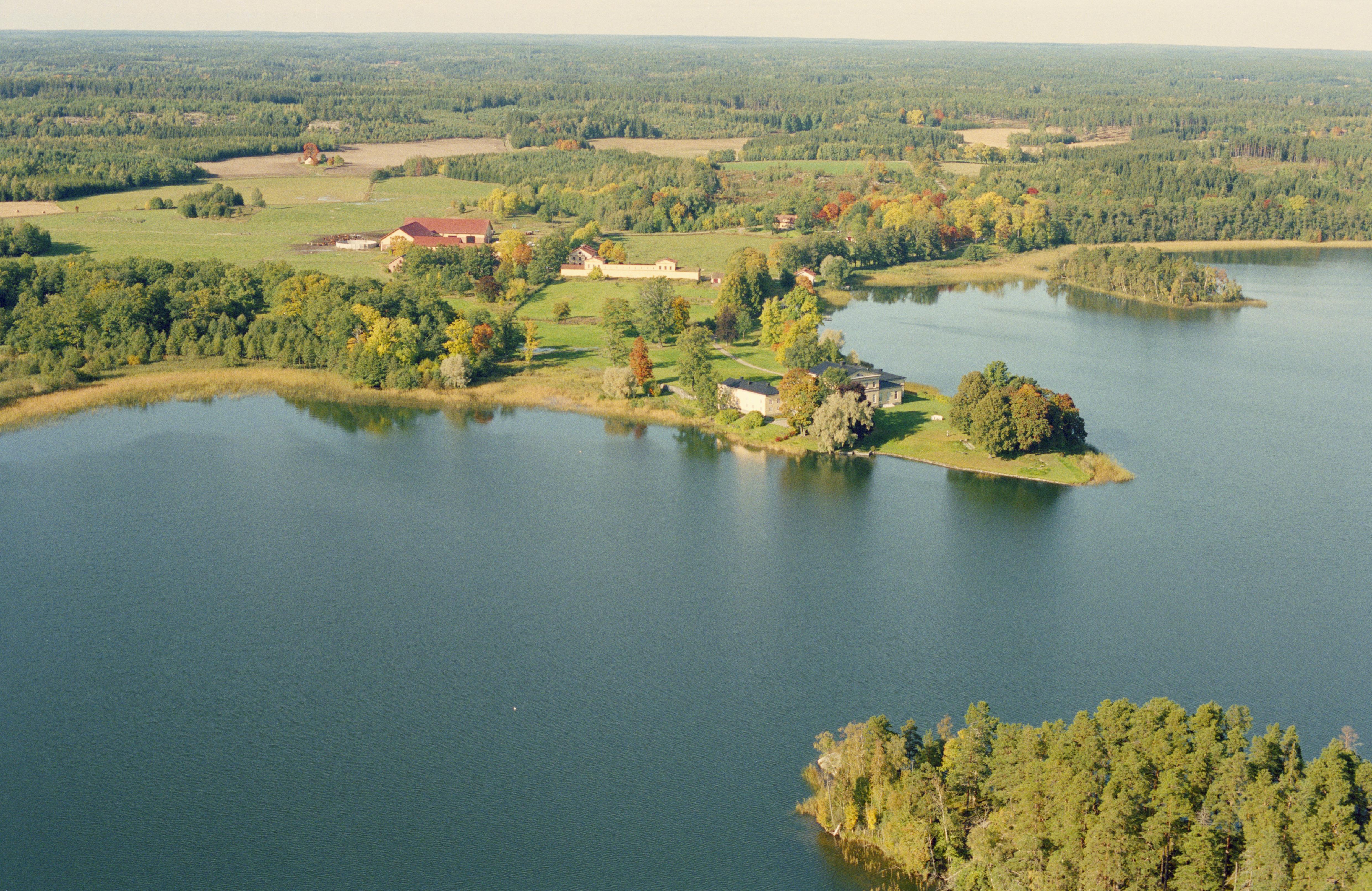 Beskrivning: Elghammars herrgård (skrivs även Älghammar) byggnadsminne RAÄnr Björnlunda 148:1. Vid bildens mitt Engelska udden vid sjön Lockvattnet. Bilden är tagen mot (väderstreck): NNO