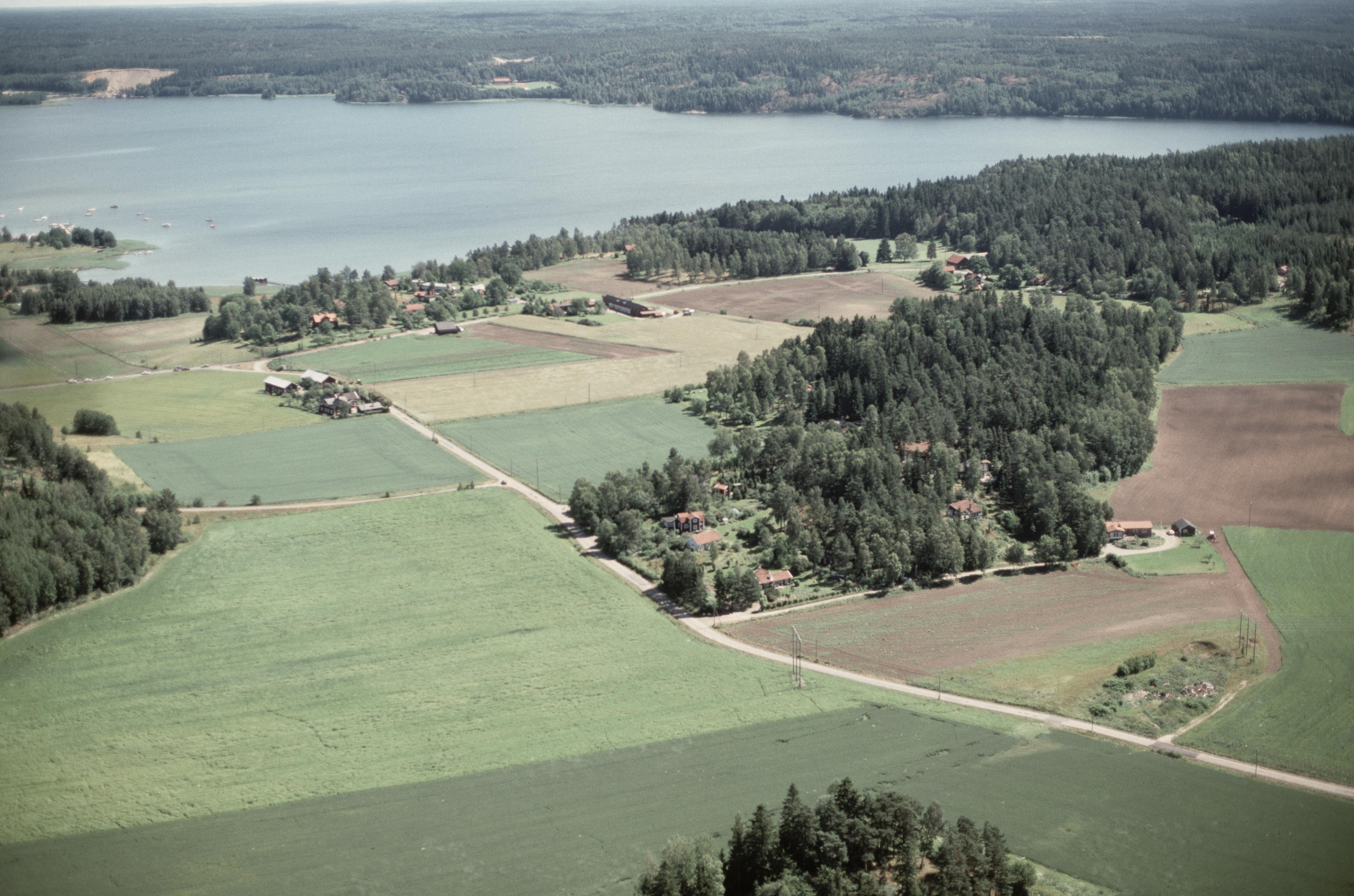 Beskrivning: Hästhagens by öster om Näs by. Vid bildens mitt stensättning RAÄnr Grödinge 503:1. I bildens övre del Kaggfjärden och gränsen mot Sorunda socken. Bilden är tagen mot (väderstreck): SO