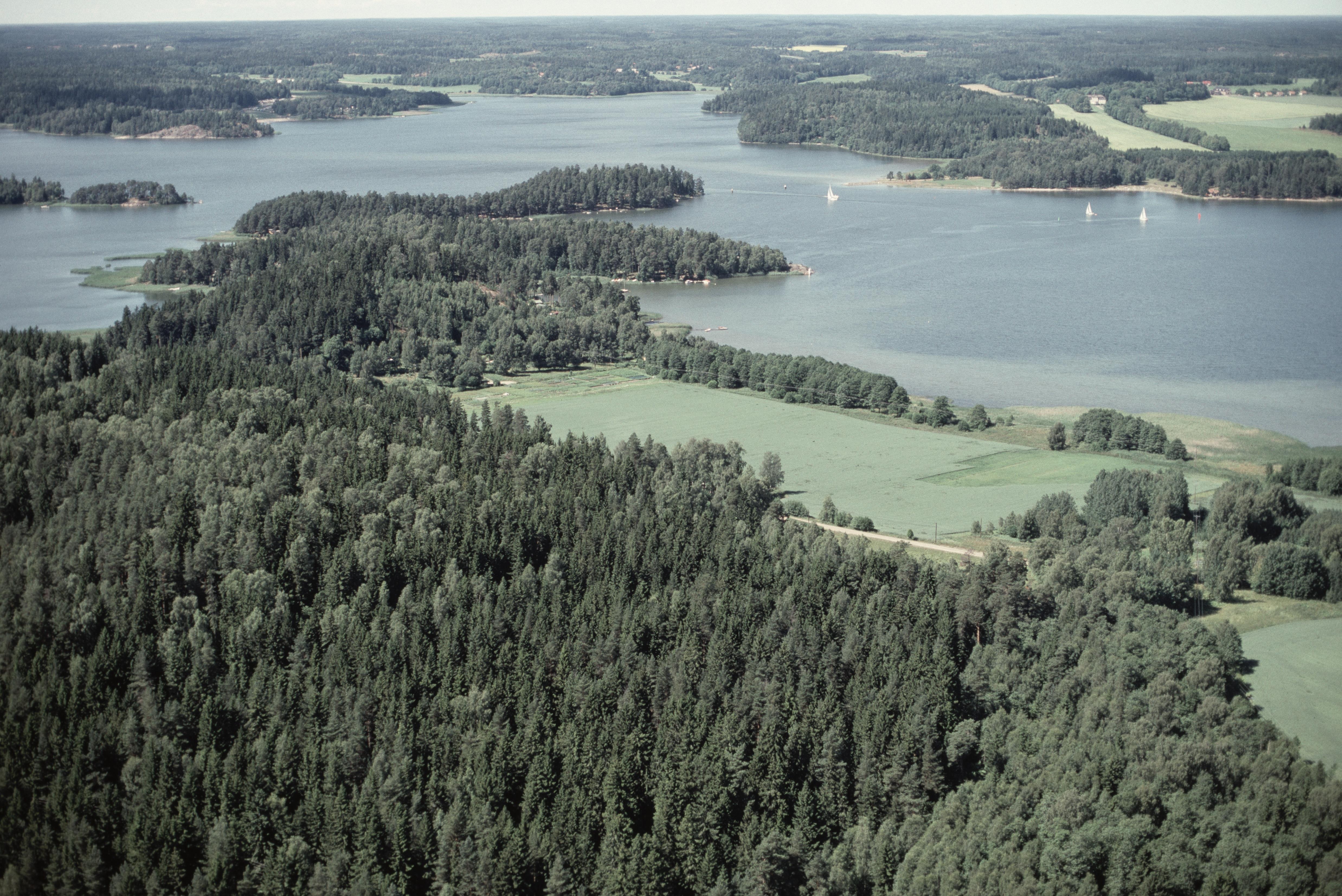 Beskrivning: Näslandet vid Näs by. Uppe till vänster Sundsudden med fornborg RAÄnr Grödinge 507:1 vid Hallsfjärden / Järnafjärden. I bildens övre del Ytterjärna socken. Bilden är tagen mot (väderstreck): V