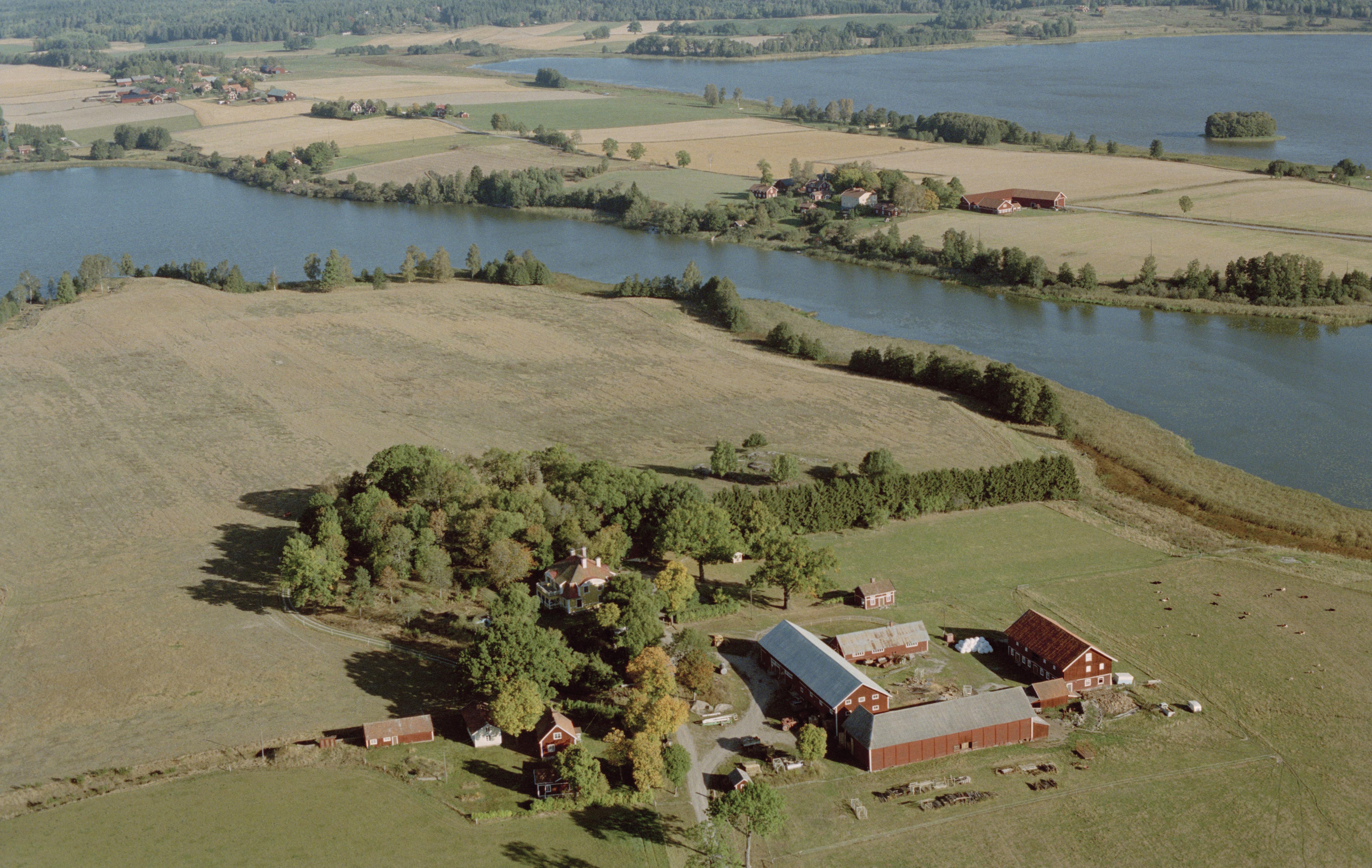 Beskrivning: Rynäs gård på en udde i Avlasjön. Vid gården fyndplats (stenyxa) RAÄnr Gåsinge-Dillnäs 432:1. Bilden är tagen mot (väderstreck): NNO