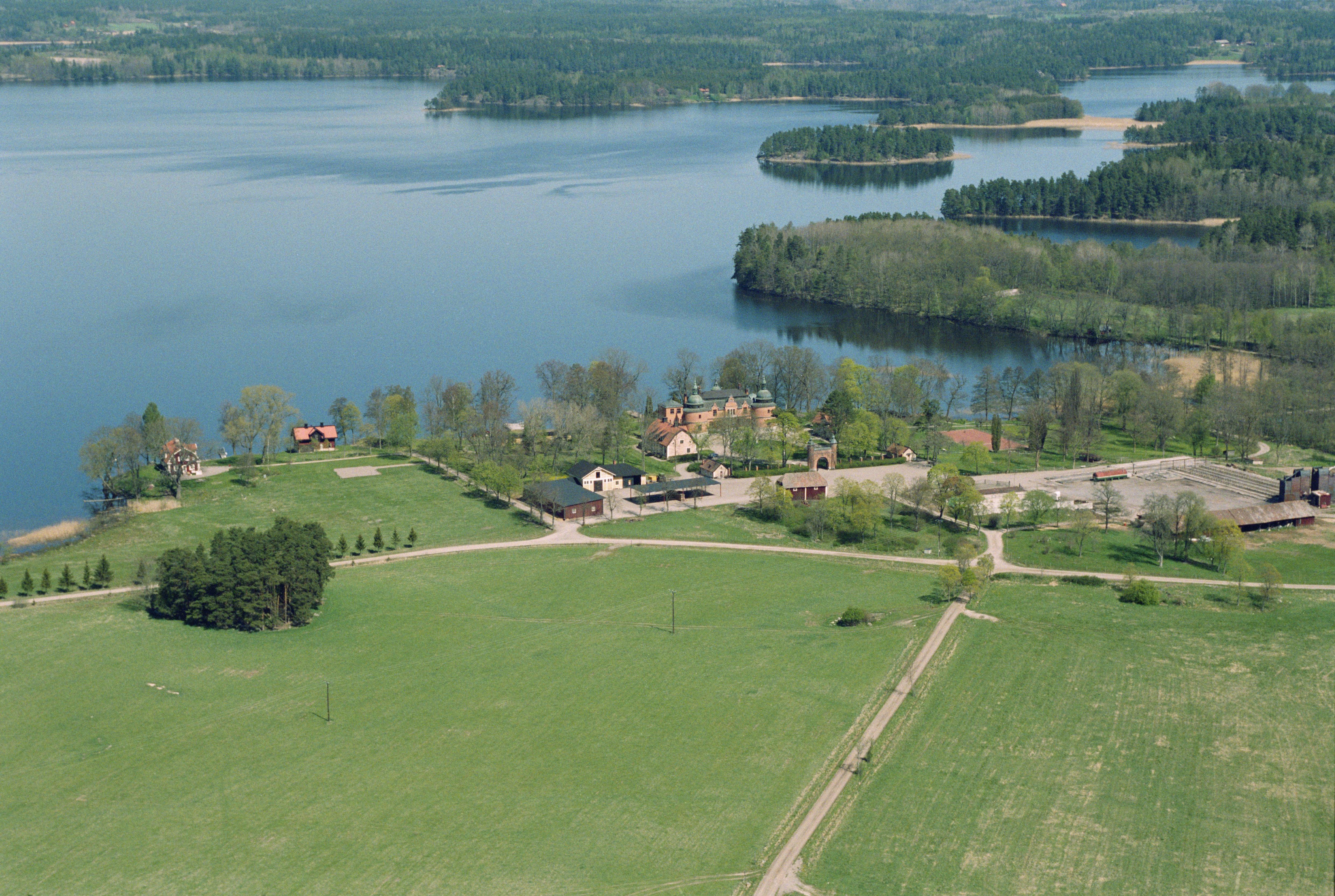 Beskrivning: Rockelsta slott / herrgård (skrivs även Rockelstad) RAÄnr Helgesta 119:1, vid sjön Båven. Bilden är tagen mot (väderstreck): NO