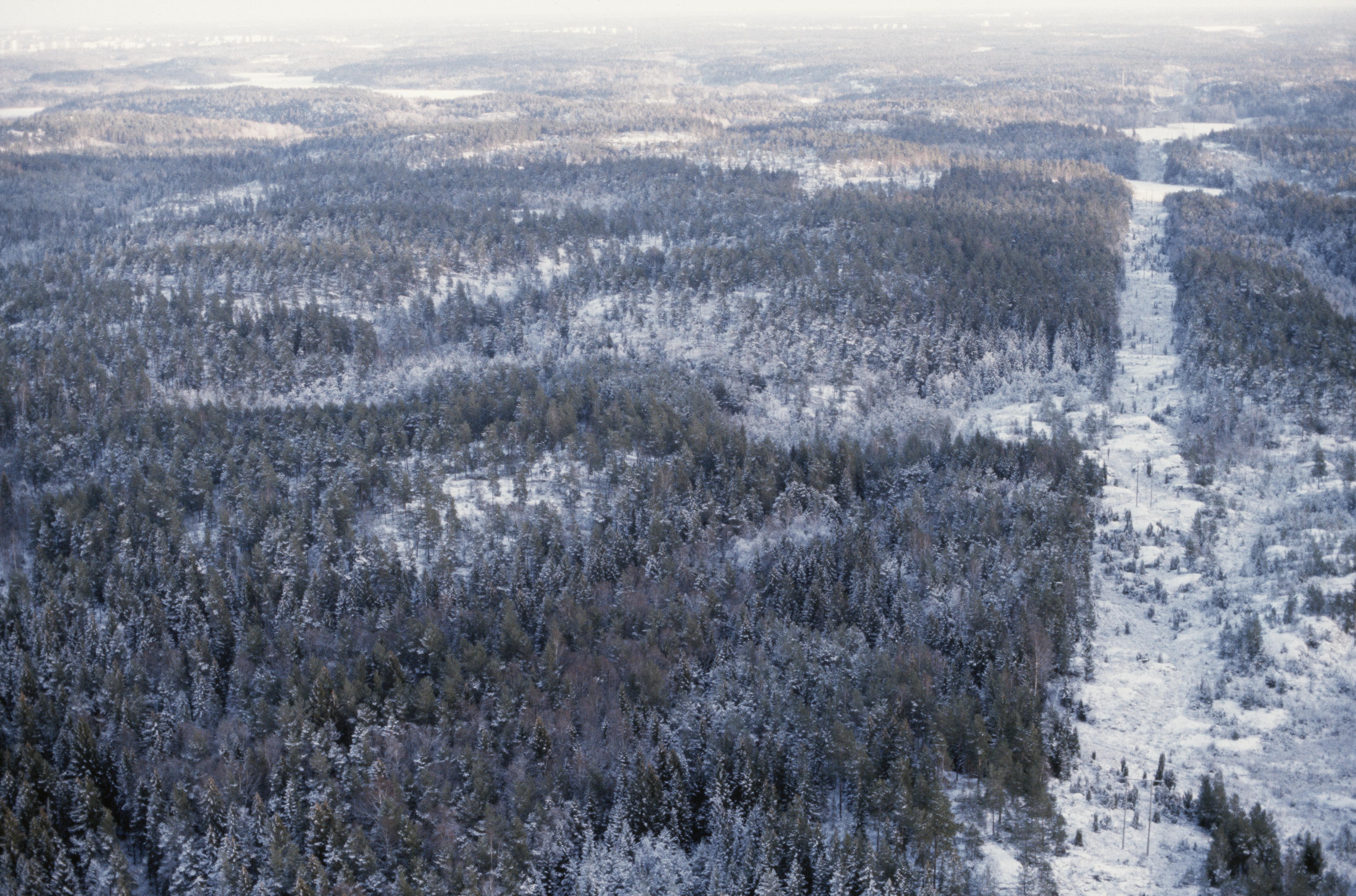 Beskrivning: Fornlämningsområde söder om Gladö Kvarn, norr om byn Östorp. Boplatser m.m. RAÄnr Huddinge 336:1, 339:1, 340:1 m.fl. I bildens övre del sjön Örlången, Högdalen och Stockholms stad. Bilden är tagen mot (väderstreck): NNO