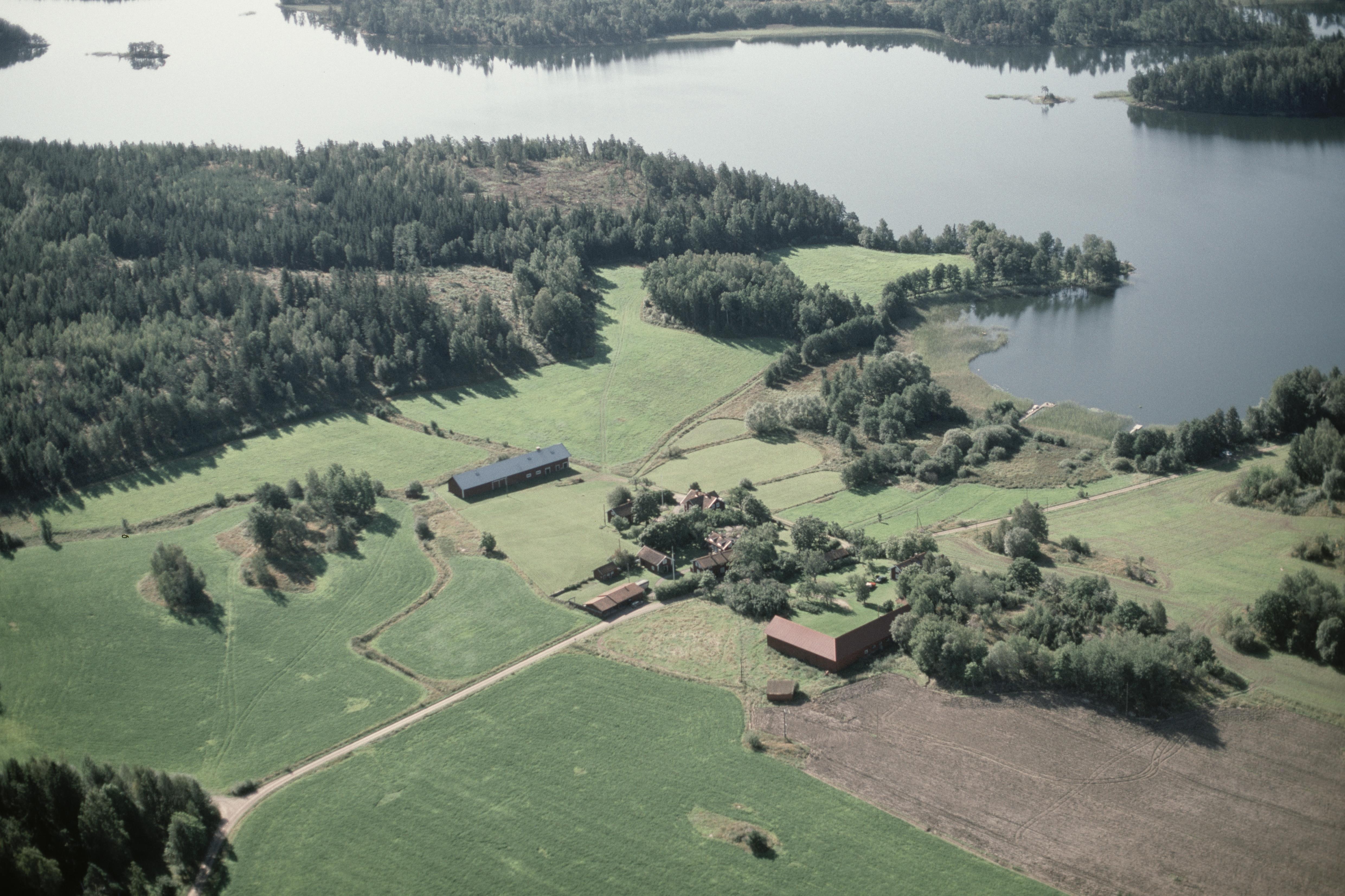 Beskrivning: Sörby vid Sörbyviken i sjön Båven. På udden vid bildens mitt stensättningar RAÄnr Hyltinge 33:1, 34:1, 137:1 m.fl. Bilden är tagen mot (väderstreck): SV