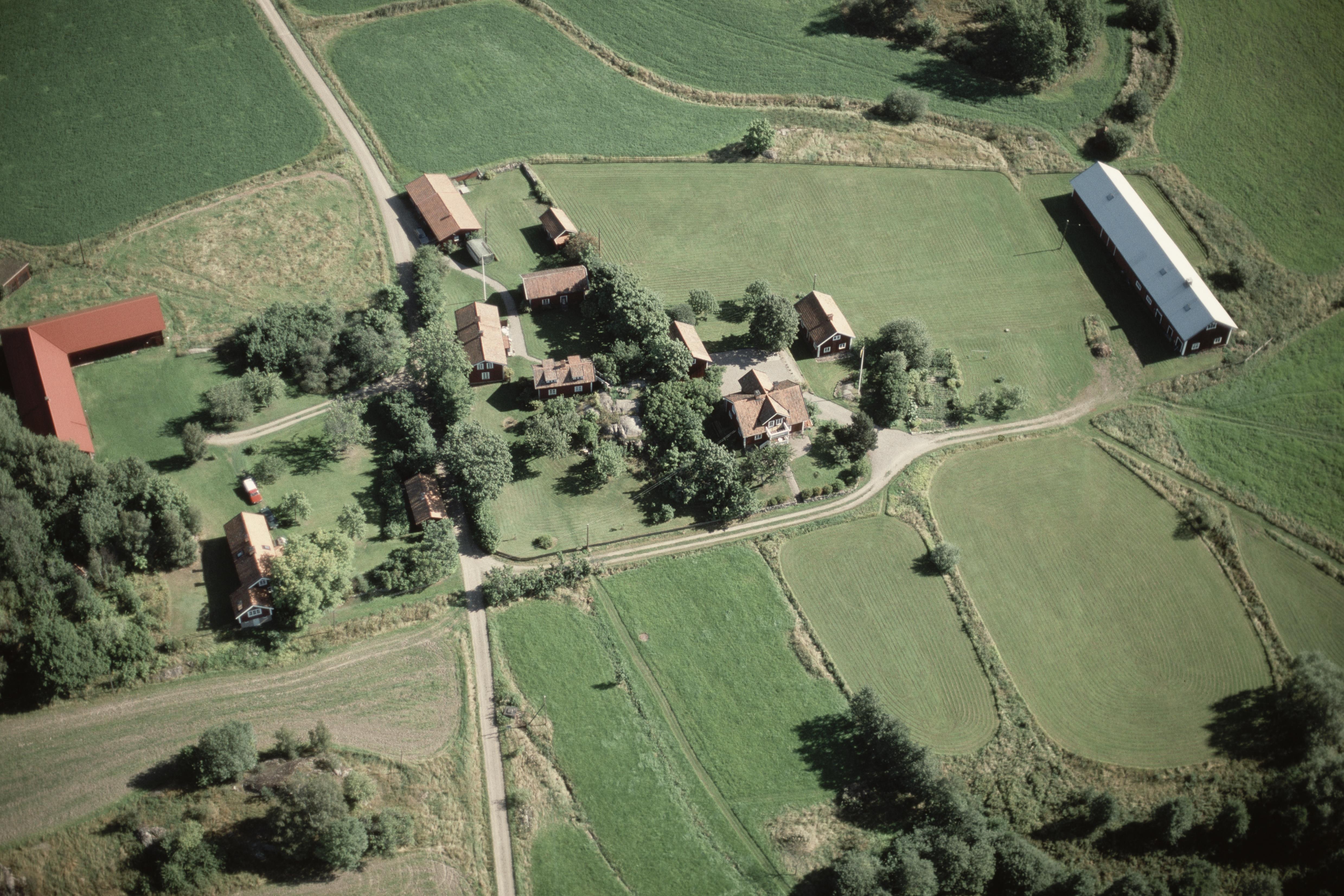 Beskrivning: Uppgården, Mellangården och Nergården i byn Sörby. Nere till vänster område med stensättning RAÄnr Hyltinge 118:1. Bilden är tagen mot (väderstreck): NO