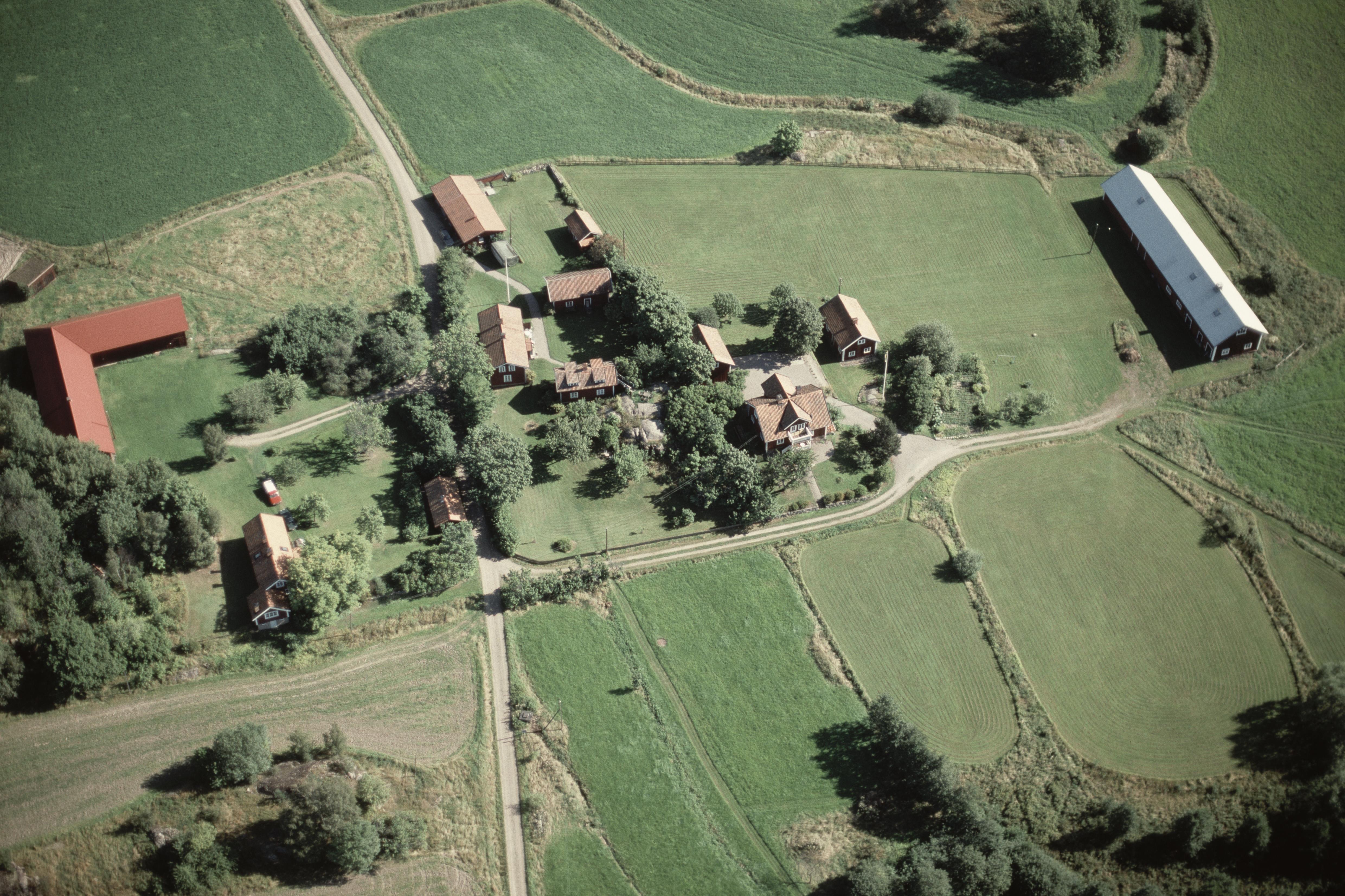 Beskrivning: Uppgården, Mellangården och Nergården i byn Sörby. Nere till vänster område med stensättning RAÄnr Hyltinge 118:1. Bilden är tagen mot (väderstreck): NO