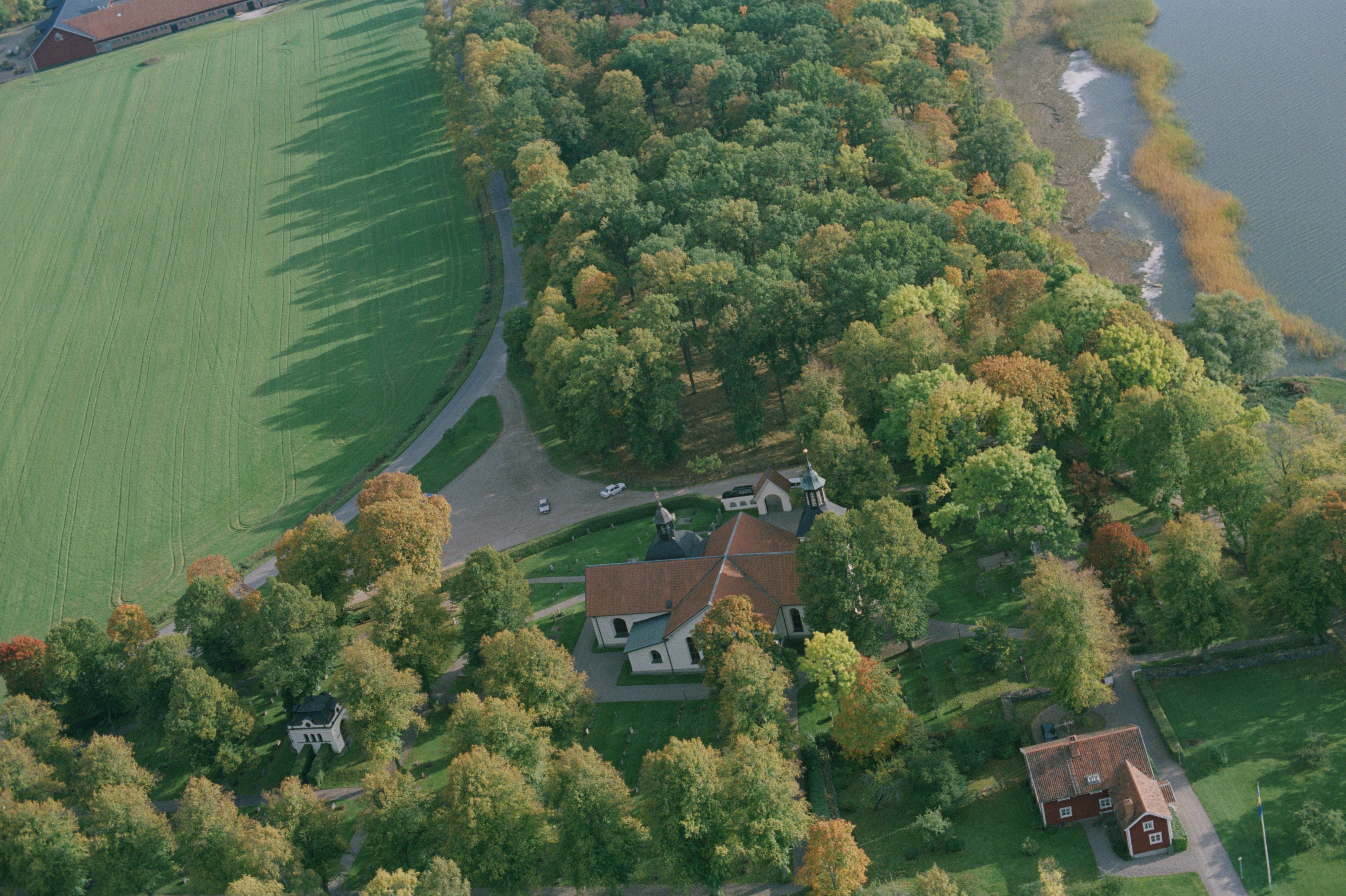 Beskrivning: Julita kyrka vid sjön Öljaren. Bilden är tagen mot (väderstreck): SO