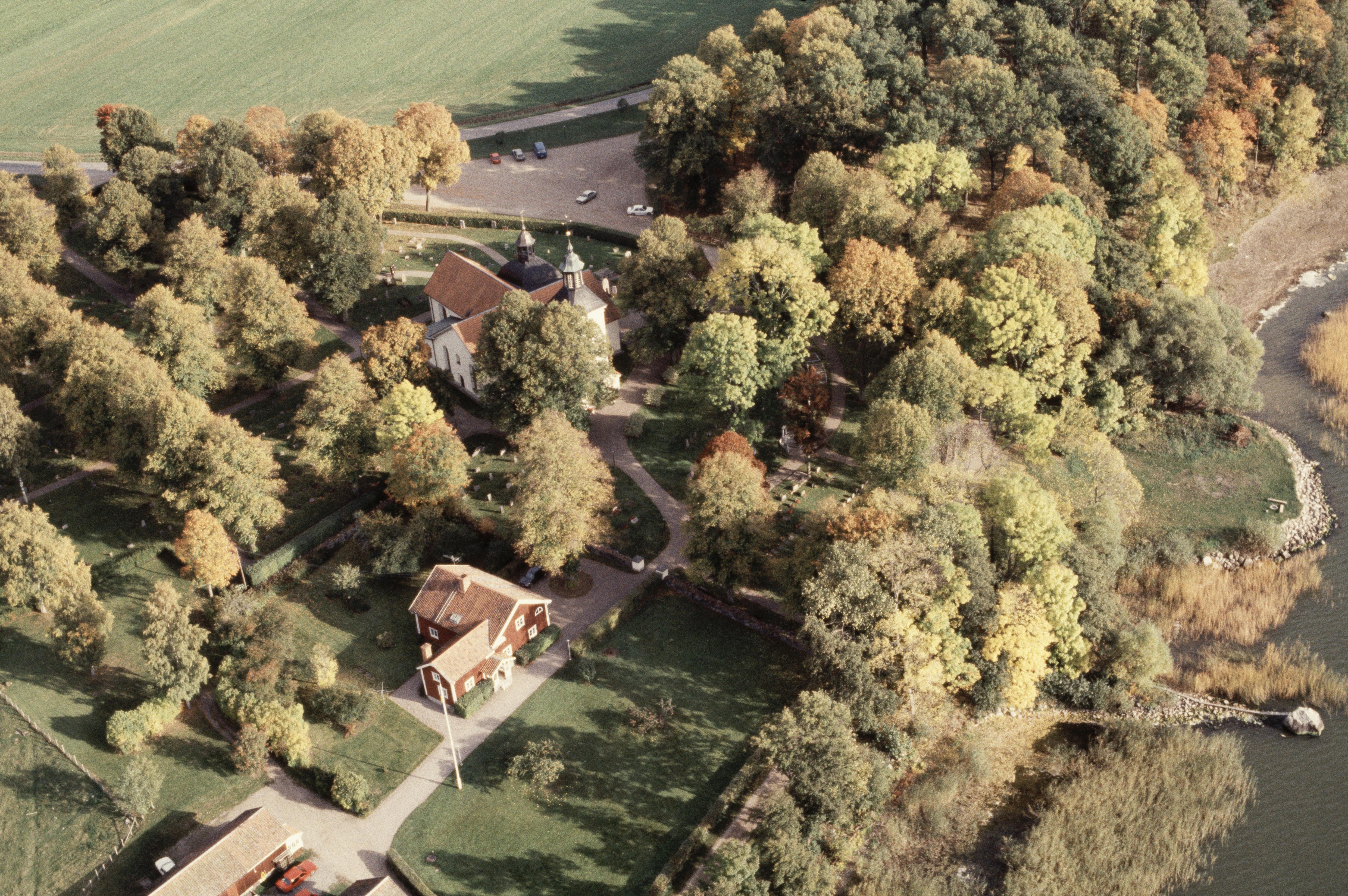 Beskrivning: Julita kyrka vid sjön Öljaren. Bilden är tagen mot (väderstreck): SO
