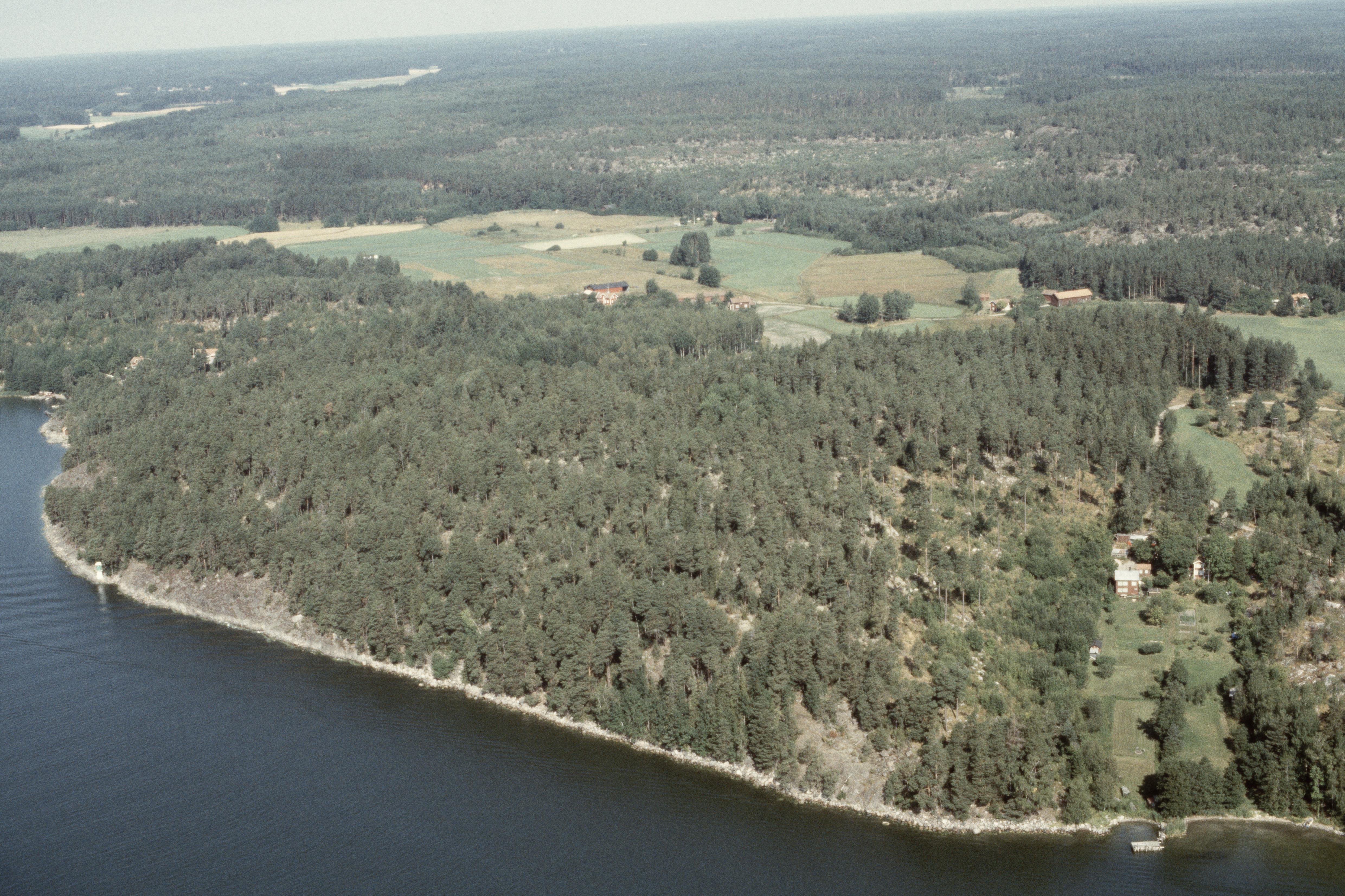 Beskrivning: Bråvikenbranten (kallas även Kolmårdsbranten) vid Bråviken. Vid bildens mitt Katrinelund och boplats RAÄnr Kvarsebo 33:1. Uppe till vänster Karlslund och Djupvik, uppe till höger Stormbäcken. Bilden är tagen mot (väderstreck): NNV
