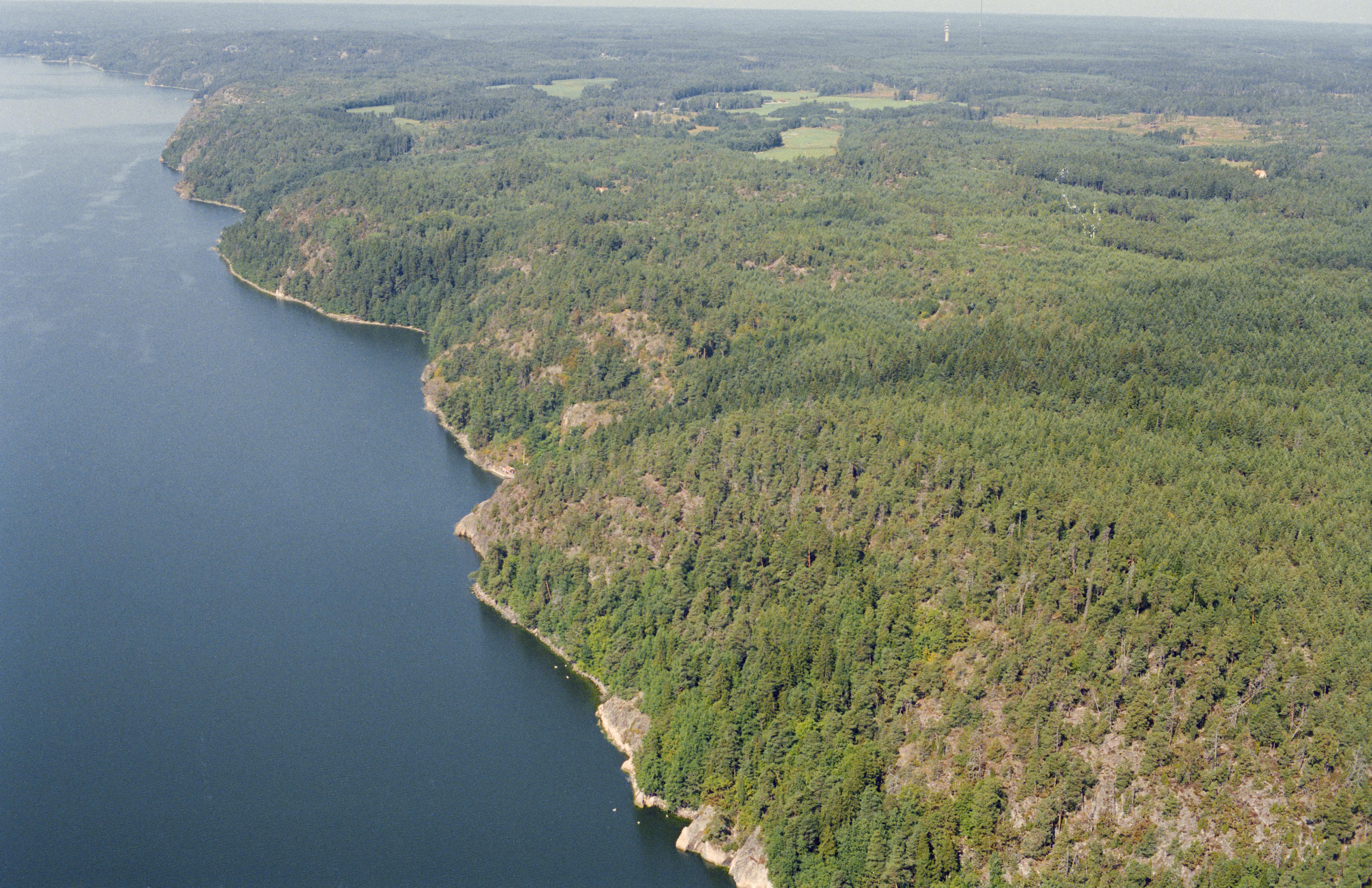 Beskrivning: Bråvikenbranten (kallas även Kolmårdsbranten) vid Bråviken. I bildens nedre del Solhem. I bildens övre del grottan RAÄnr Kvarsebo 72:1 vid Brytsebo och Skvättan vid gränsen mot socknet Krokek. Bilden är tagen mot (väderstreck): NV