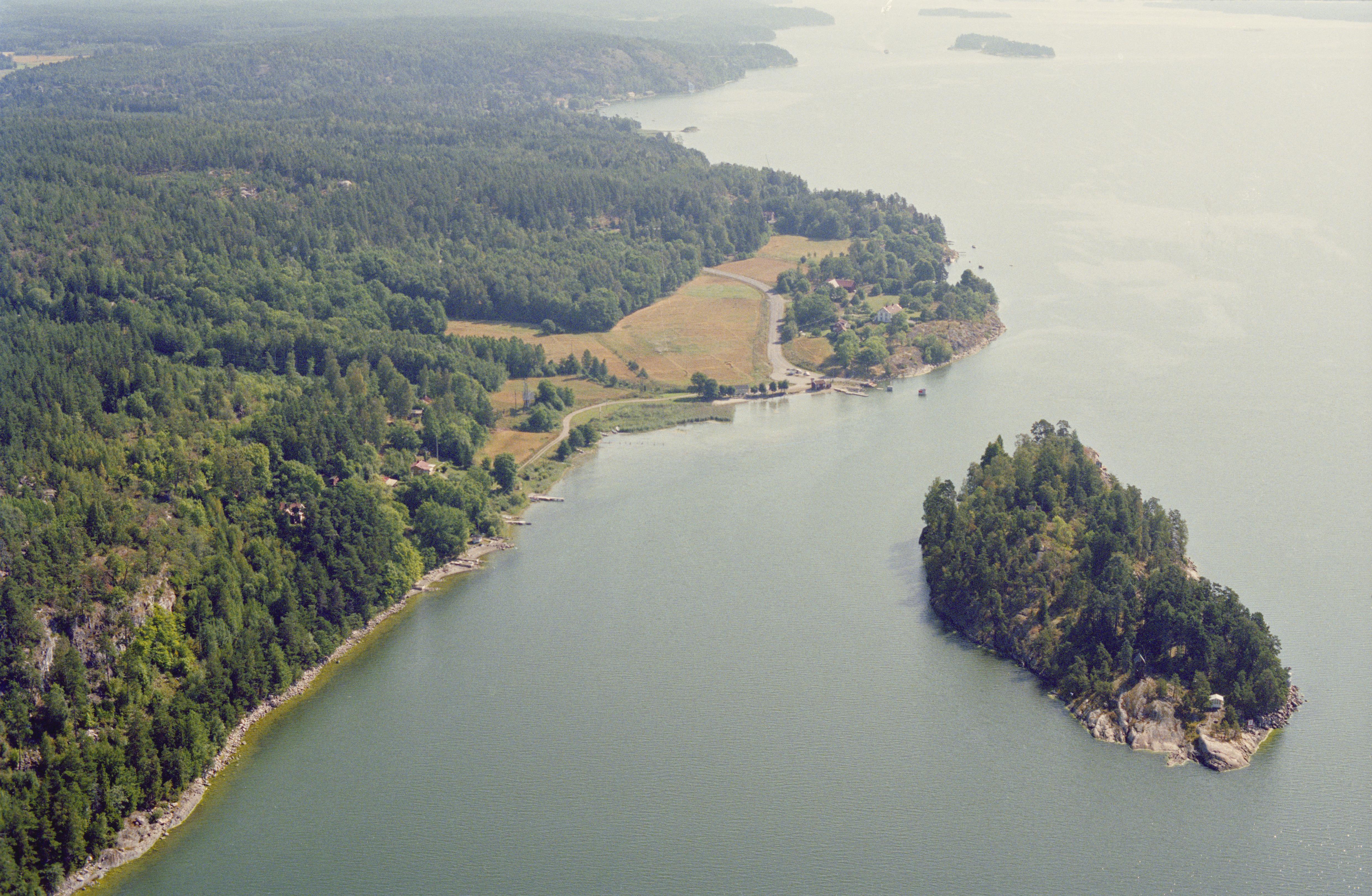 Beskrivning: Beskrivning: Sätersundet vid Bråvikenbranten / Kolmårdsbranten. Till vänster boplats RAÄnr Kvarsebo 13:1. På Säterholmen till höger fästning/skans RAÄnr Kvarsebo 3:1. Bilden är tagen mot (väderstreck): ONO Fotosyfte: Flygbildsdokumentation