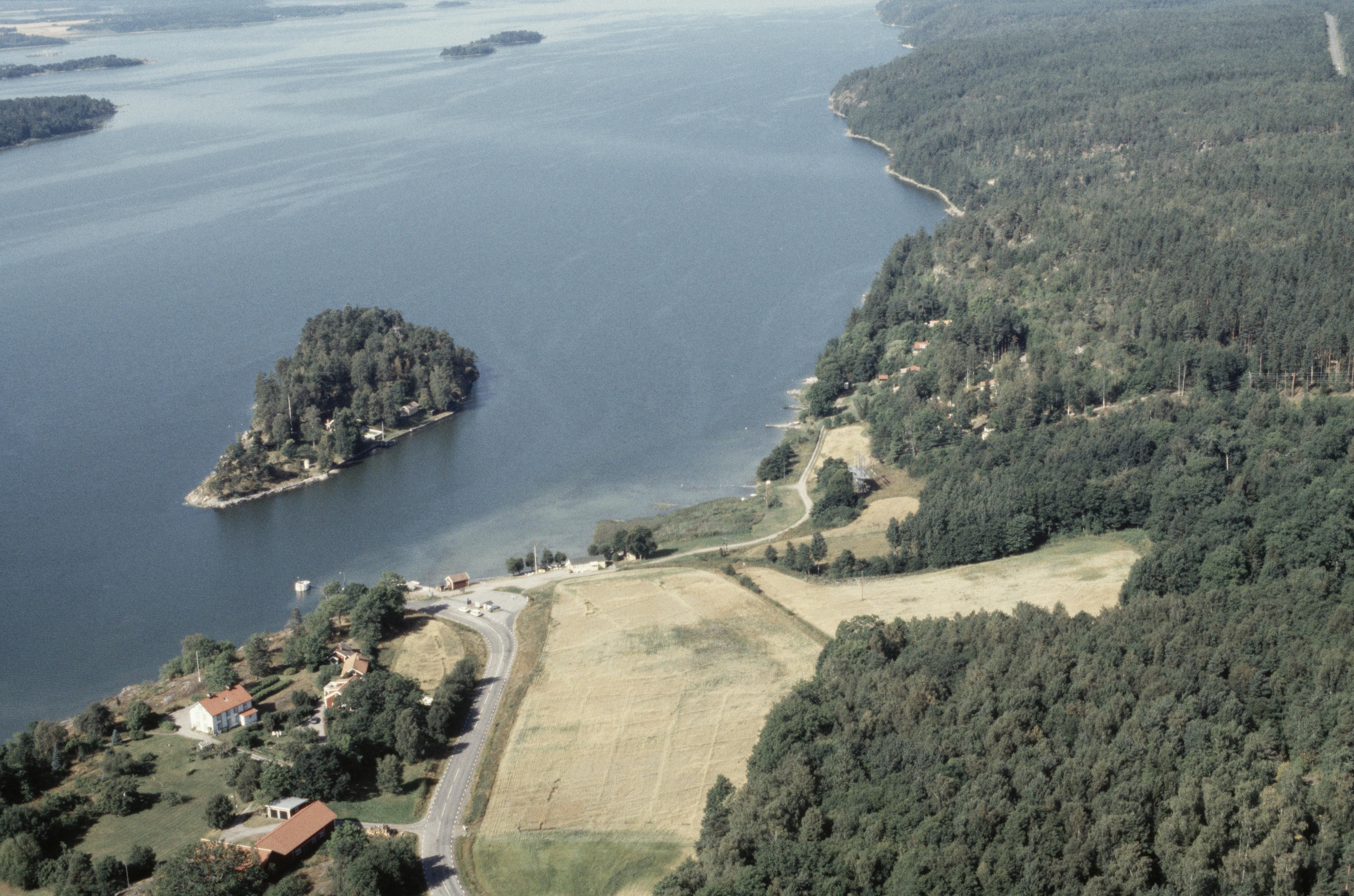 Beskrivning: Sätersundet vid Bråvikenbranten / Kolmårdsbranten. Till höger boplats RAÄnr Kvarsebo 13:1. På Säterholmen till vänster fästning/skans RAÄnr Kvarsebo 3:1. Bilden är tagen mot (väderstreck): VSV