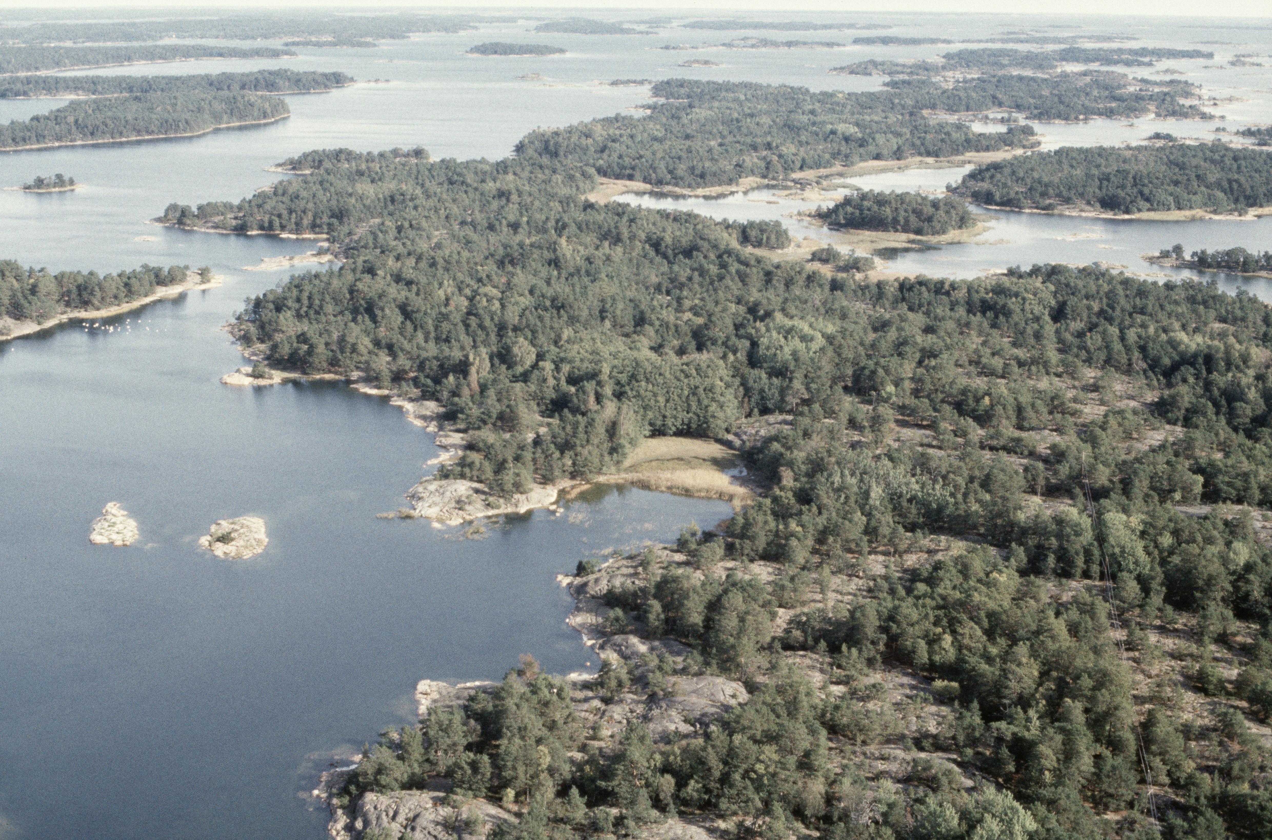 Beskrivning: Jungfruskärs naturreservat i Nämndöfjärden. Ön Jungfruskär med kringliggande öar och holmar. Till vänster viken Norra Fladen. Bilden är tagen mot (väderstreck): N