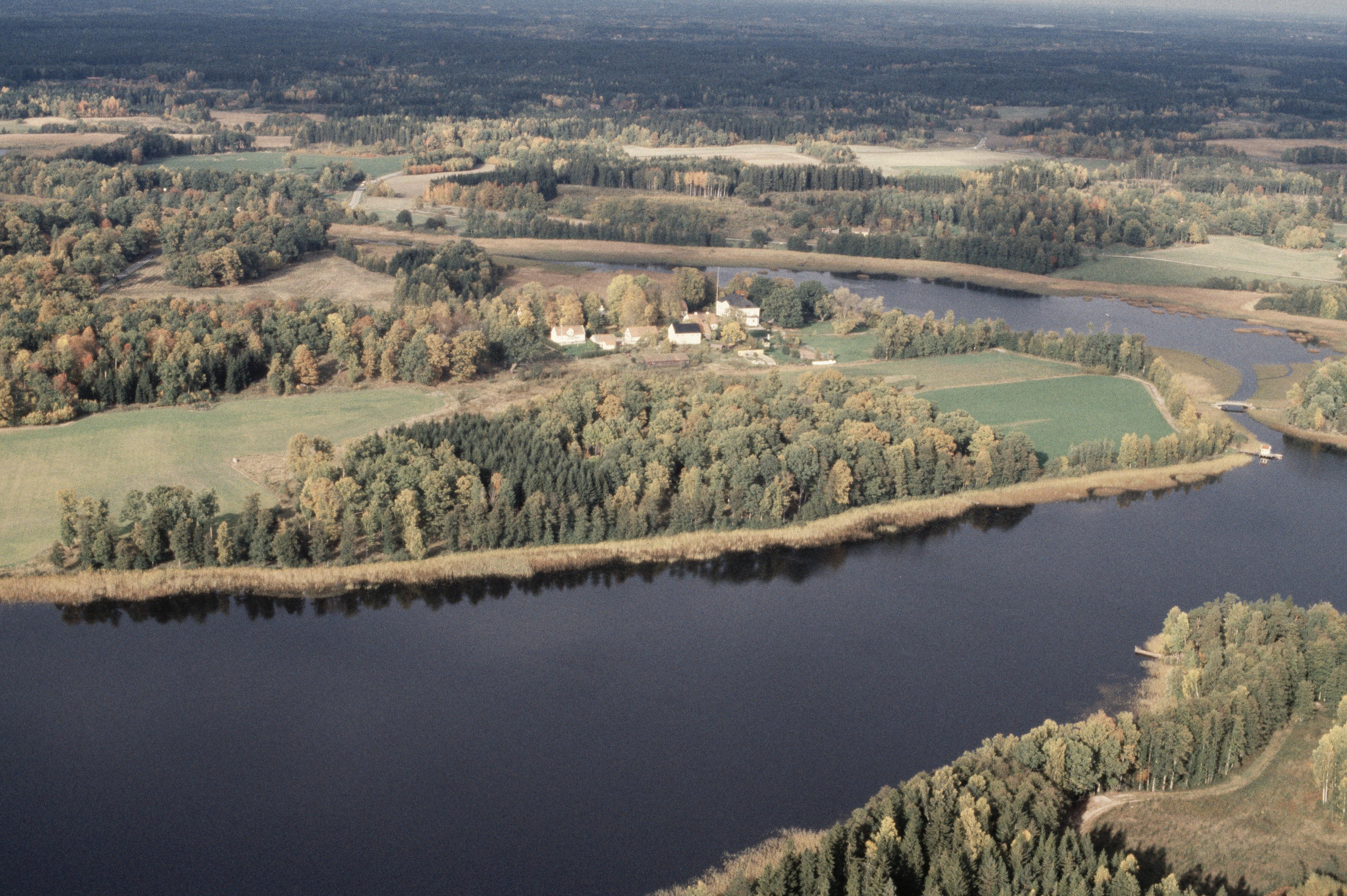 Beskrivning: Hedensö herrgård RAÄnr Näshulta 28:1 vid Brofjärden i Näshultasjön. Uppe till höger området Sibirien norr om Hedensö Ladugård. Bilden är tagen mot (väderstreck): N
