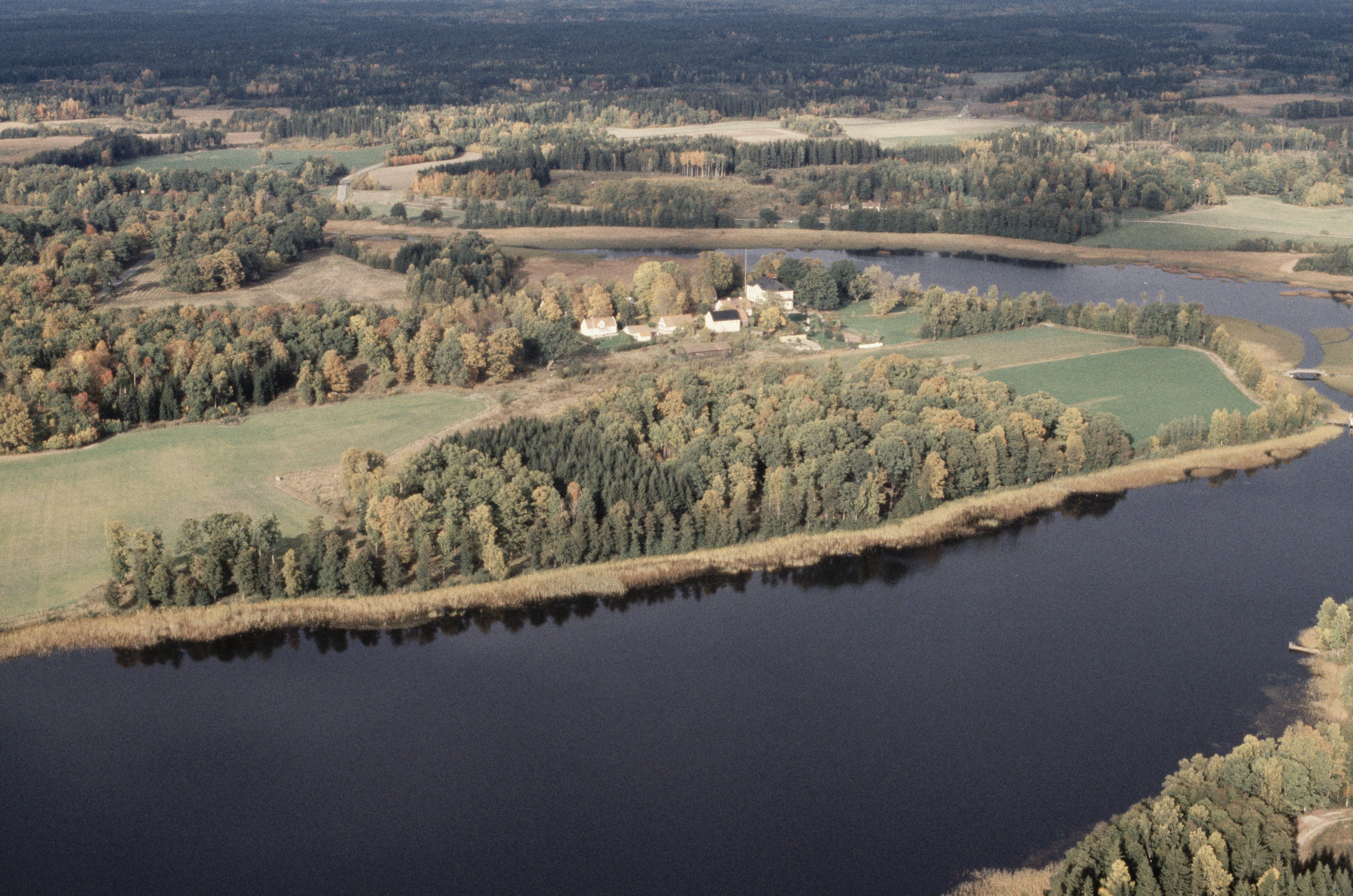 Beskrivning: Hedensö herrgård RAÄnr Näshulta 28:1 vid Brofjärden i Näshultasjön. Uppe till höger området Sibirien norr om Hedensö Ladugård. Bilden är tagen mot (väderstreck): N
