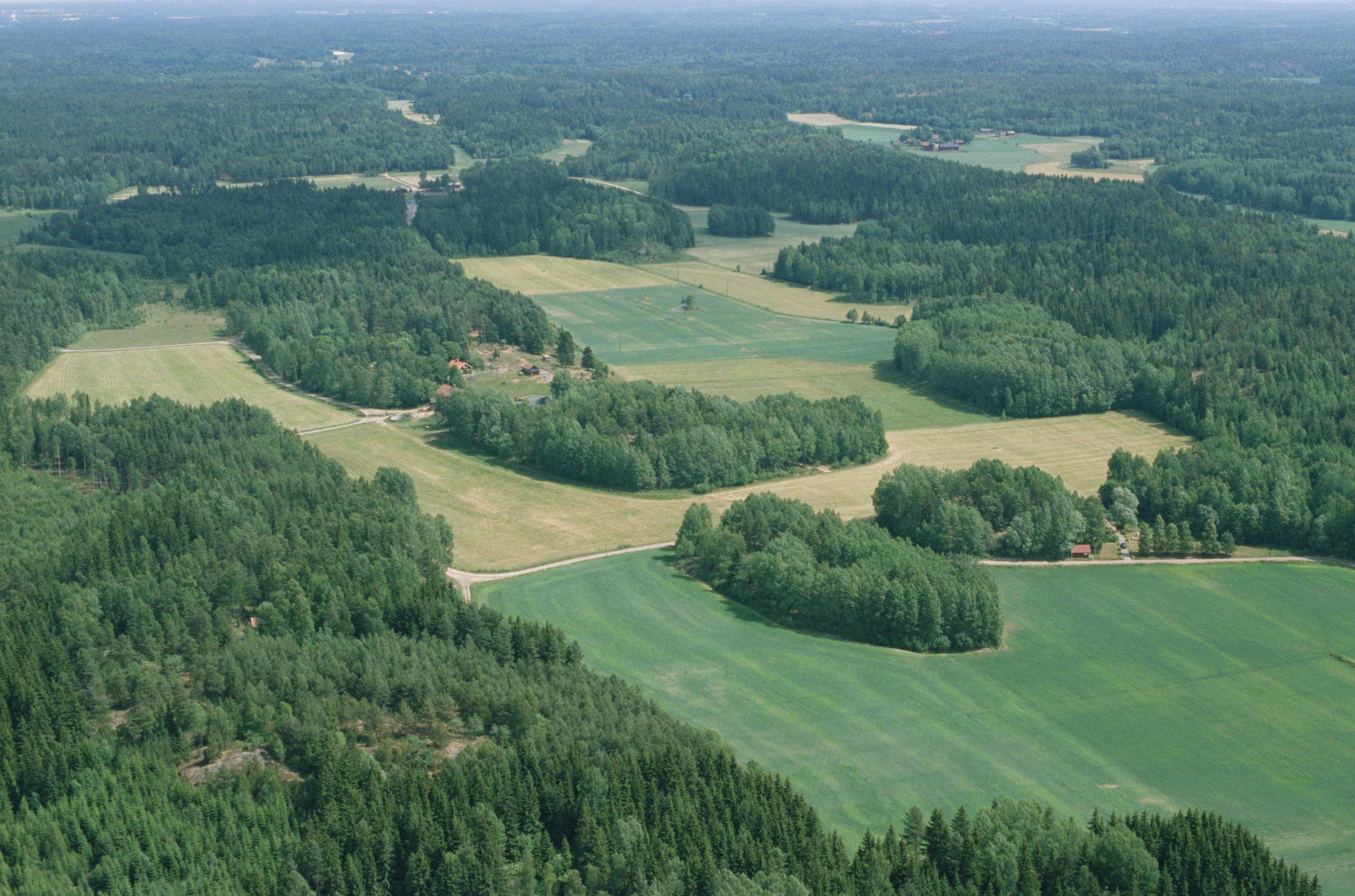 Beskrivning: Ängar vid gränsen mellan socknen Sorunda och Grödinge (nere till vänster). Vid bildens mitt bytomt RAÄnr Sorunda 873 vid Lövtorps gård. Bilden är tagen mot (väderstreck): ONO