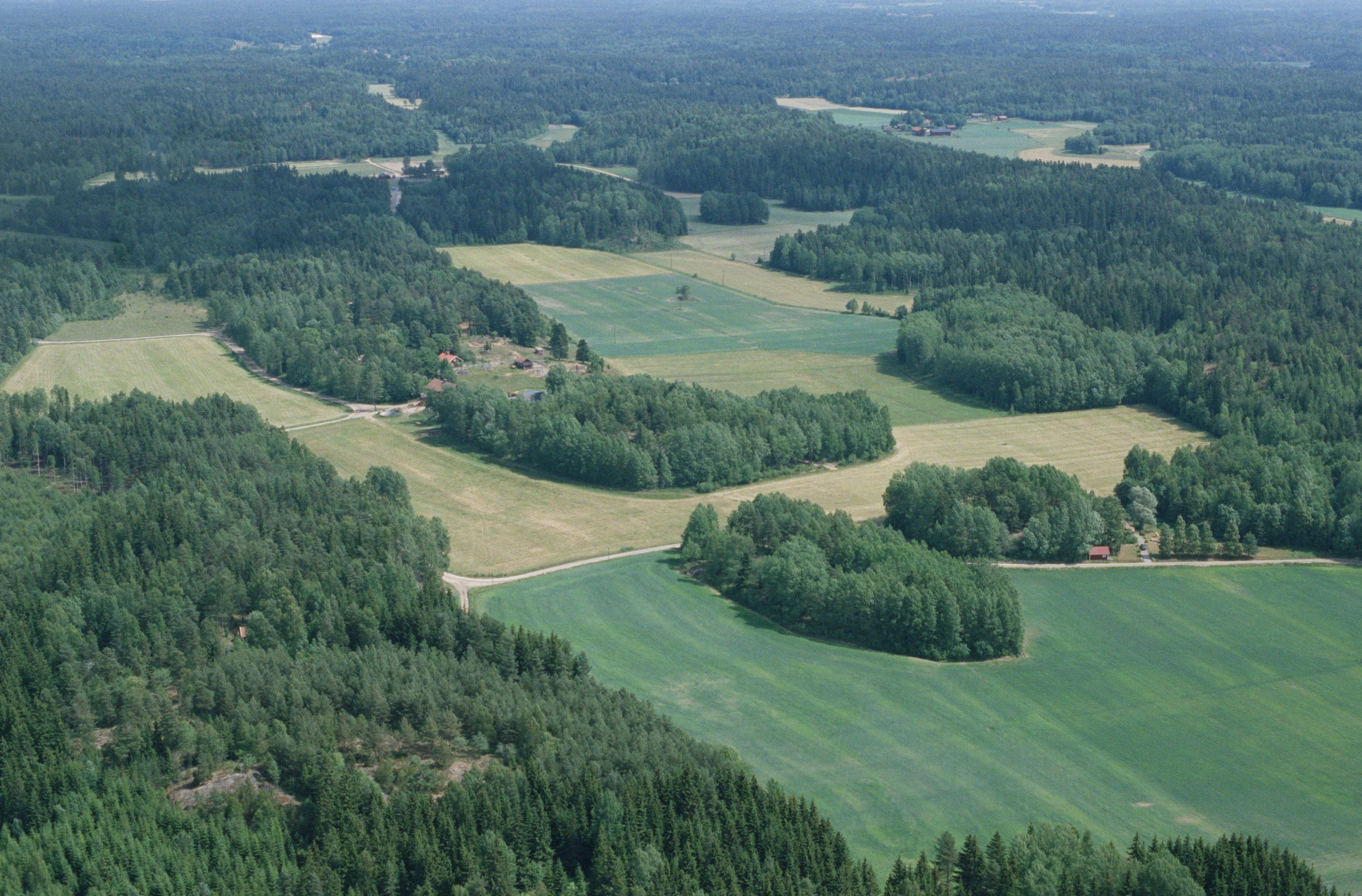 Beskrivning: Ängar vid gränsen mellan socknen Sorunda och Grödinge (nere till vänster). Vid bildens mitt bytomt RAÄnr Sorunda 873 vid Lövtorps gård. Bilden är tagen mot (väderstreck): ONO