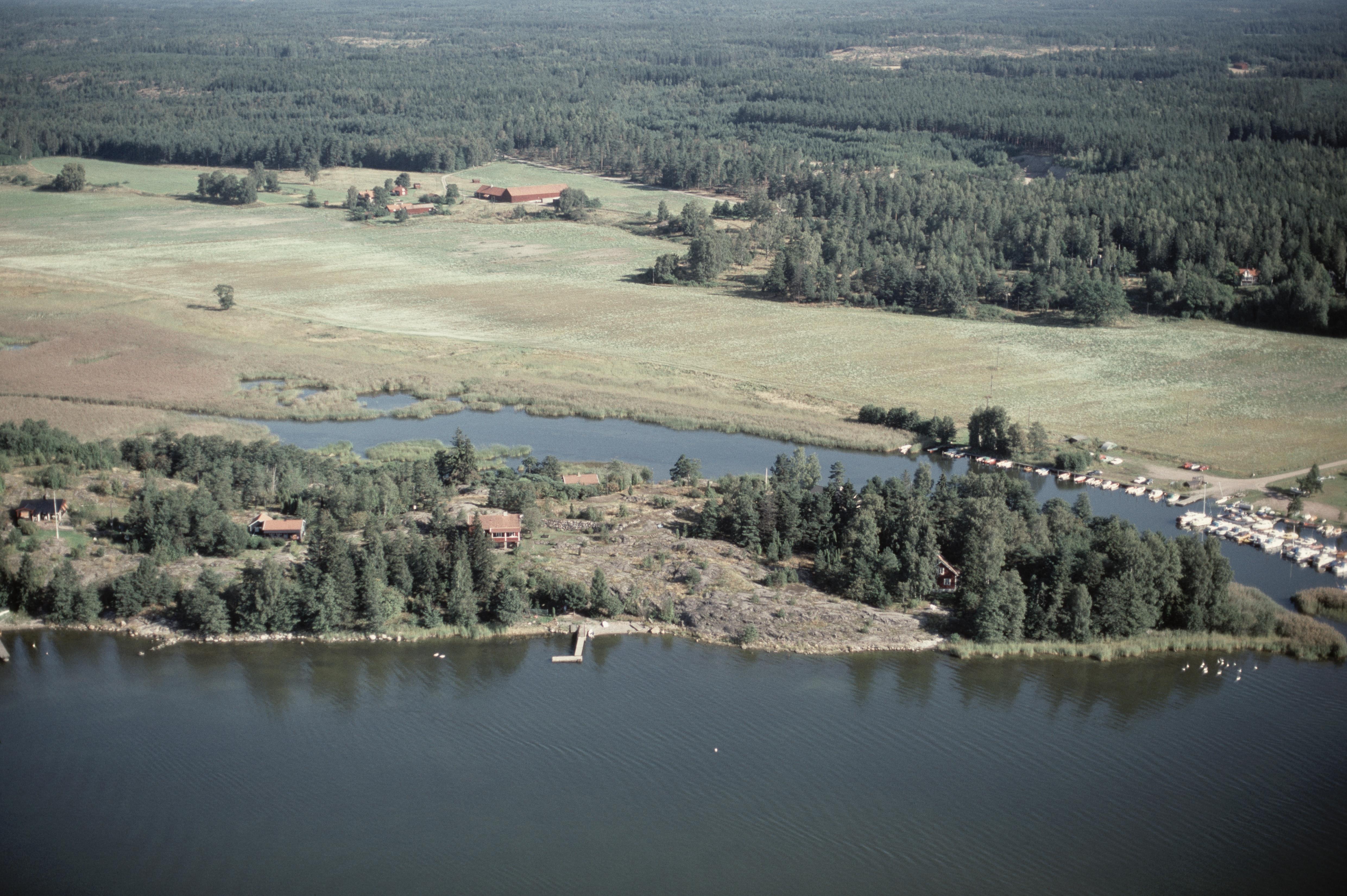 Beskrivning: Under bildens mitt Hasselö skans RAÄnr Svärta 16:1 på Skansholmen vid inloppet till Sjösafjärden. Bilden är tagen mot (väderstreck): N