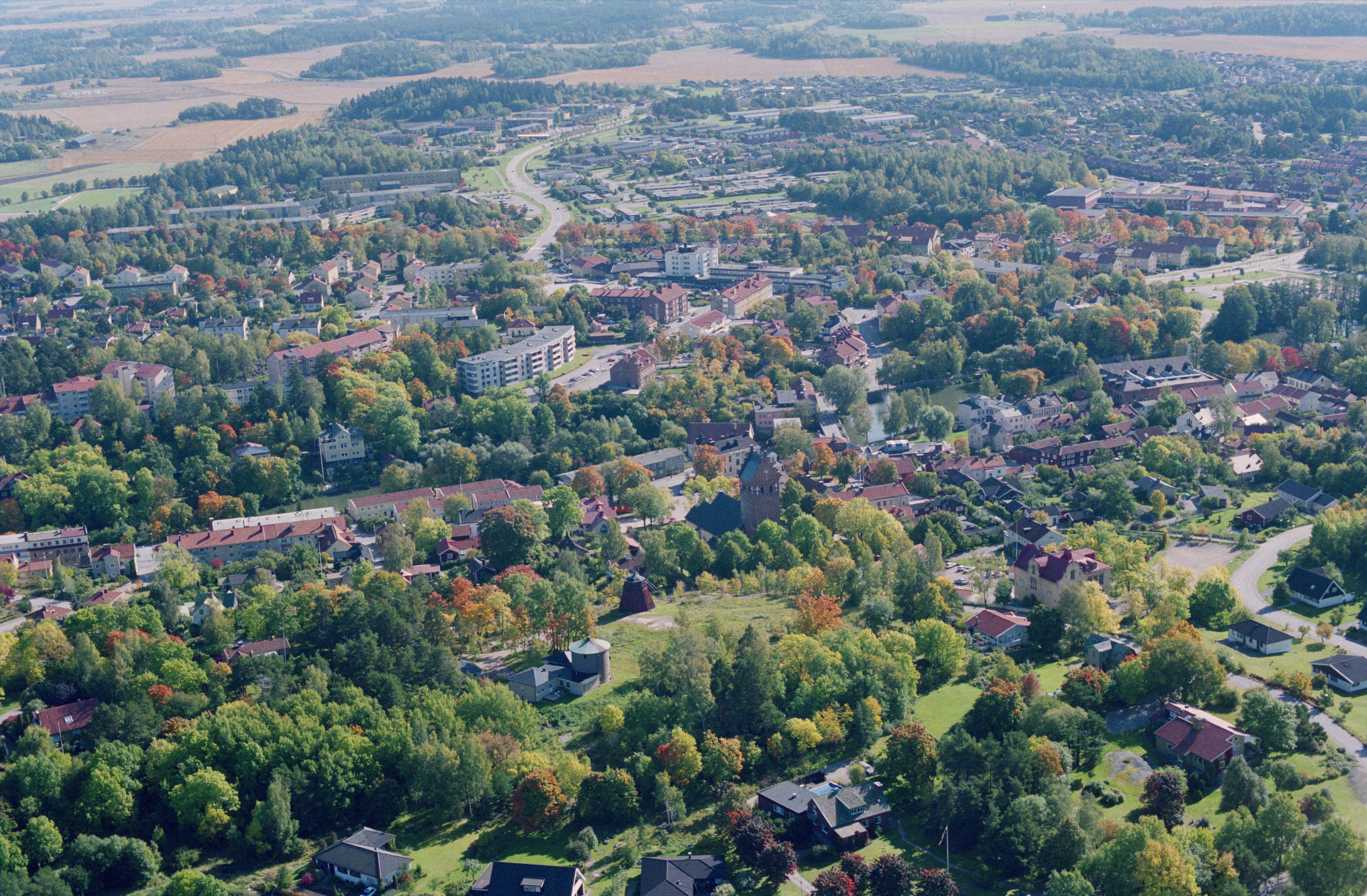 Beskrivning: Torshälla tätort. Eskilstunaån. Borgruin RAÄnr Torshälla 71:1 i vid bildens mitt. I bildens nedre del stadslager RAÄnr Torshälla 95:1. Bilden är tagen mot (väderstreck): SO