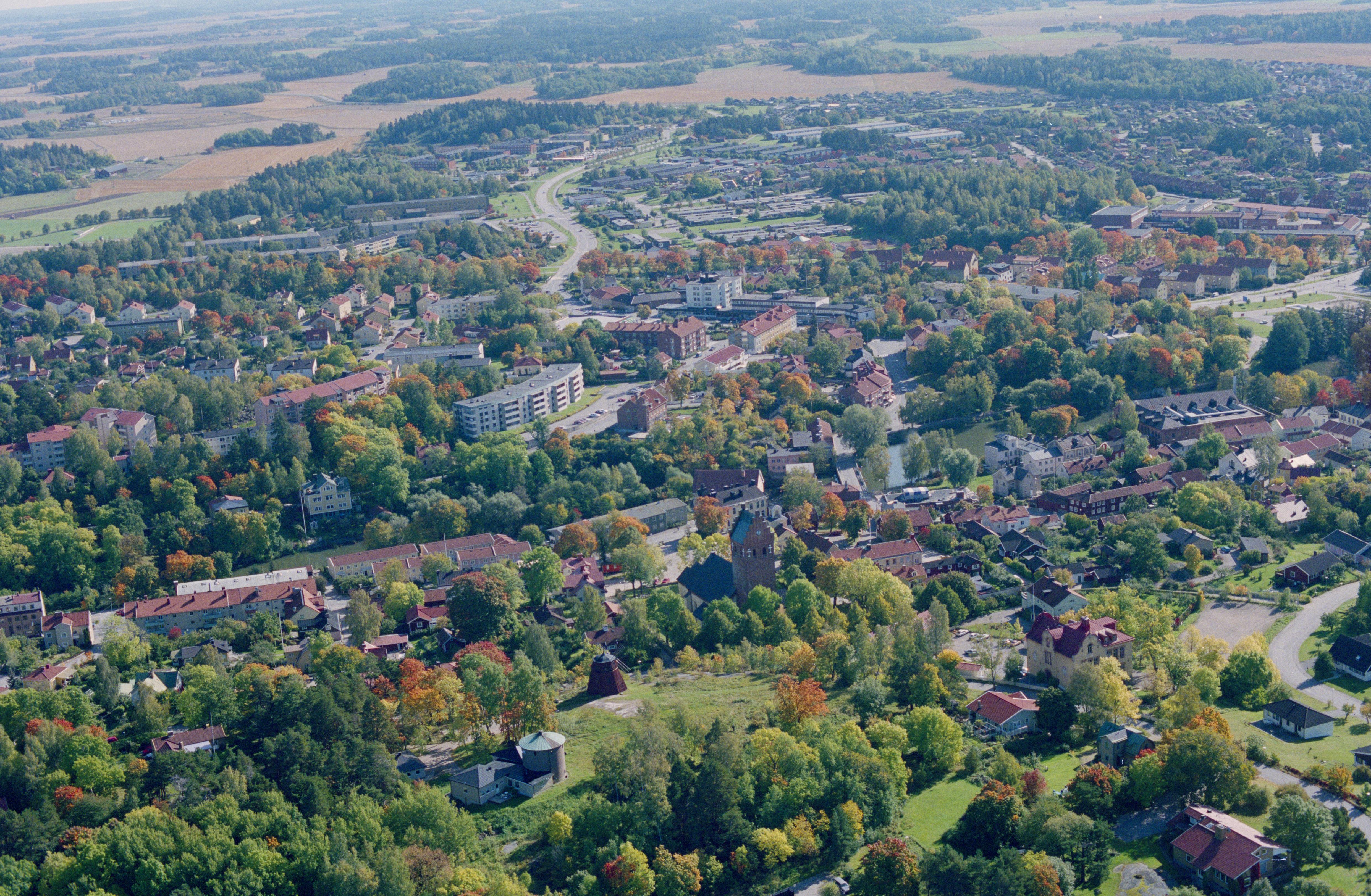 Beskrivning: Torshälla tätort. Eskilstunaån. Borgruin RAÄnr Torshälla 71:1 i vid bildens mitt. I bildens nedre del stadslager RAÄnr Torshälla 95:1. Bilden är tagen mot (väderstreck): SO