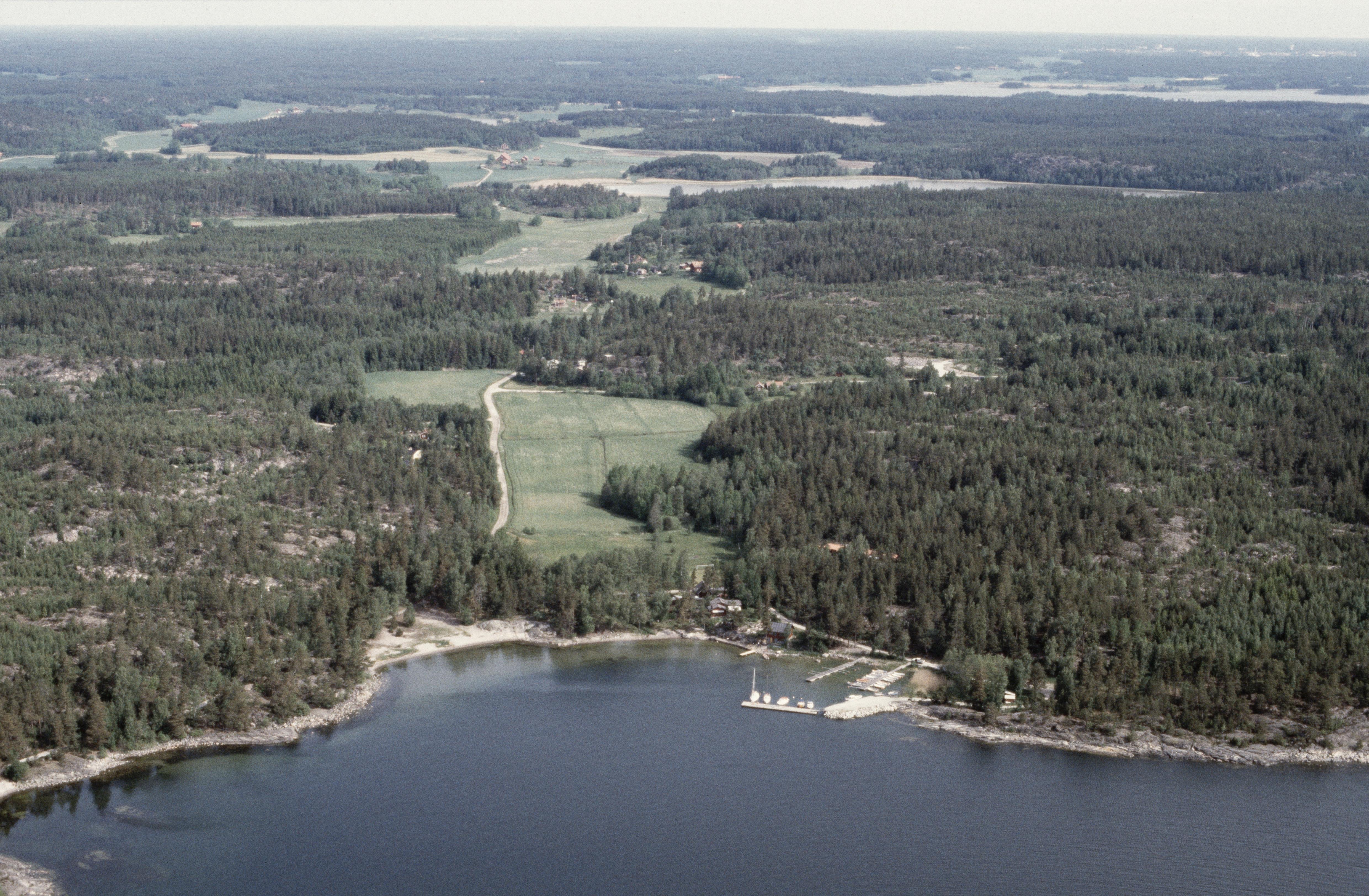 Beskrivning: Västra Koviken i Bråviken. Vid bildens mitt stenåldersboplatser vid Lilla Skara RAÄnr Tunaberg 351:1, 389:1 och 661 m.fl. Bilden är tagen mot (väderstreck): N