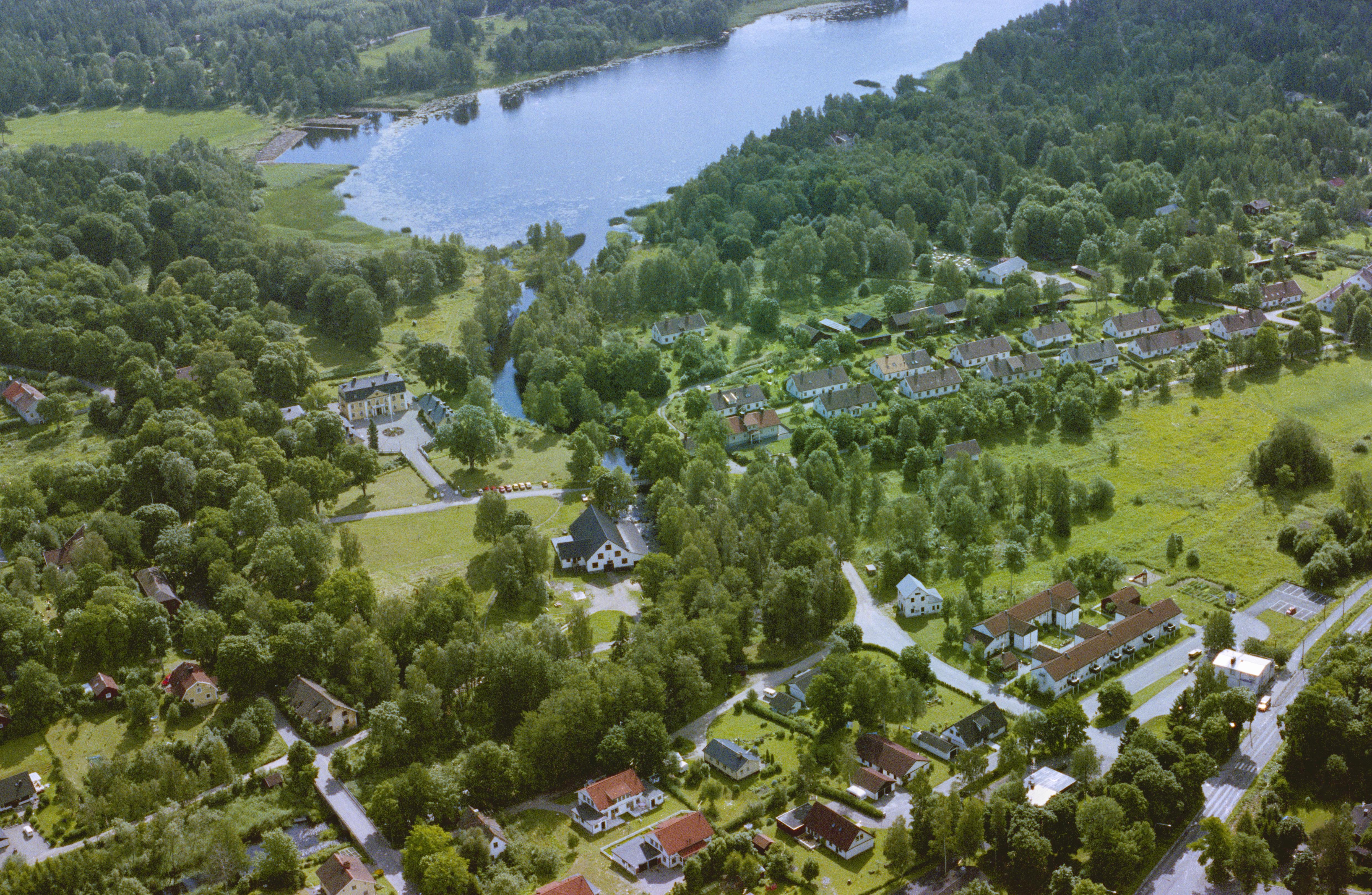 Beskrivning: Skebobruk RAÄnr Ununge 127:1 vid Skeboån och sjön Närdingen. Till vänster om bildens mitt Skebobruks herrgård. Bilden är tagen mot (väderstreck): SO