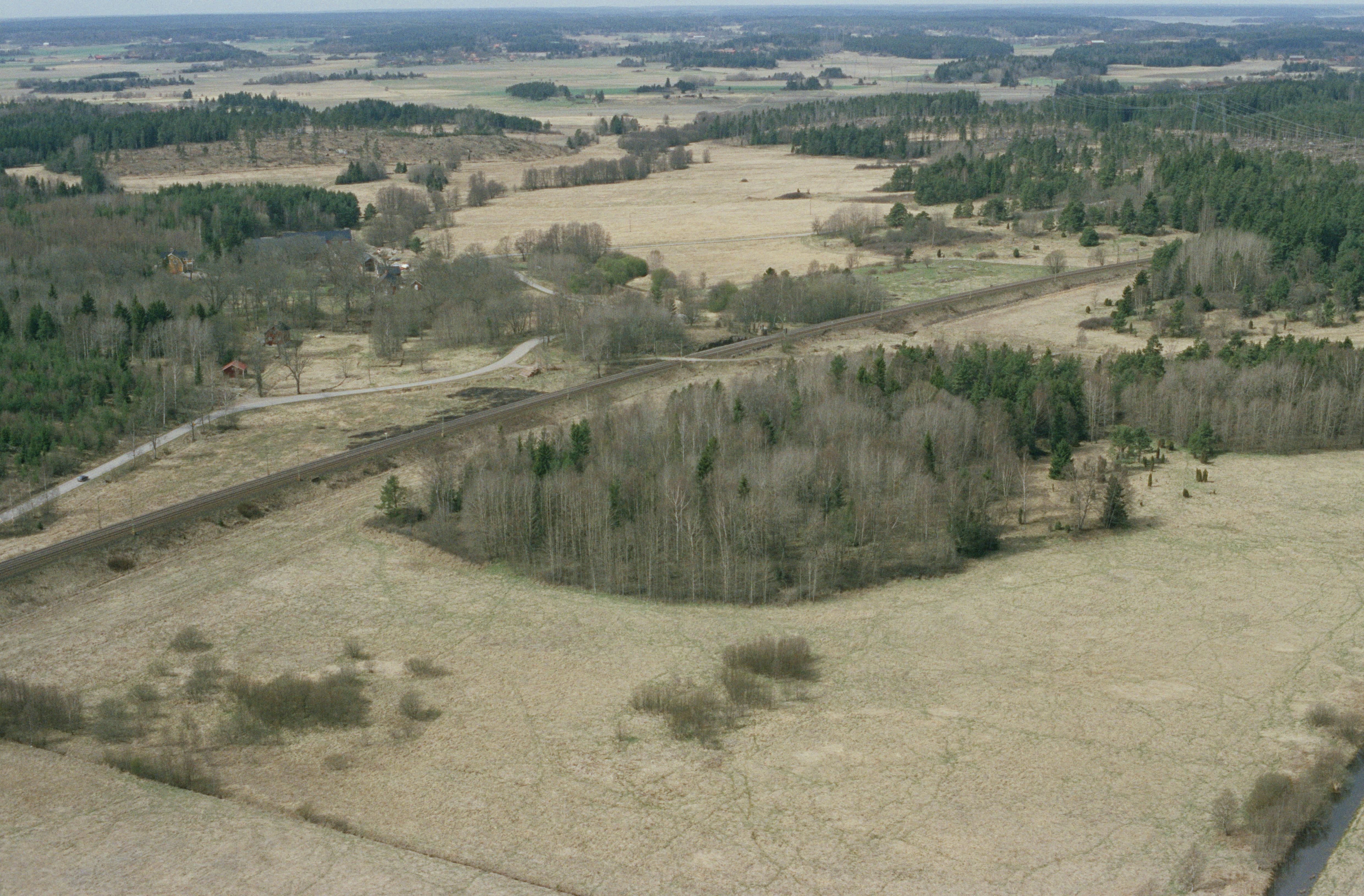 Beskrivning: Forsby i Forsbyåns dalgång. Till vänster om bildens mitt husgrund RAÄnr Knivsta 176:1 och stensättning Knivsta 189:1. Till höger gravfält RAÄnr Knivsta 126:1 med hällristningar Knivsta 269:1-9 m.fl. vid Grindstugan. Bilden är tagen mot (väderstreck): V