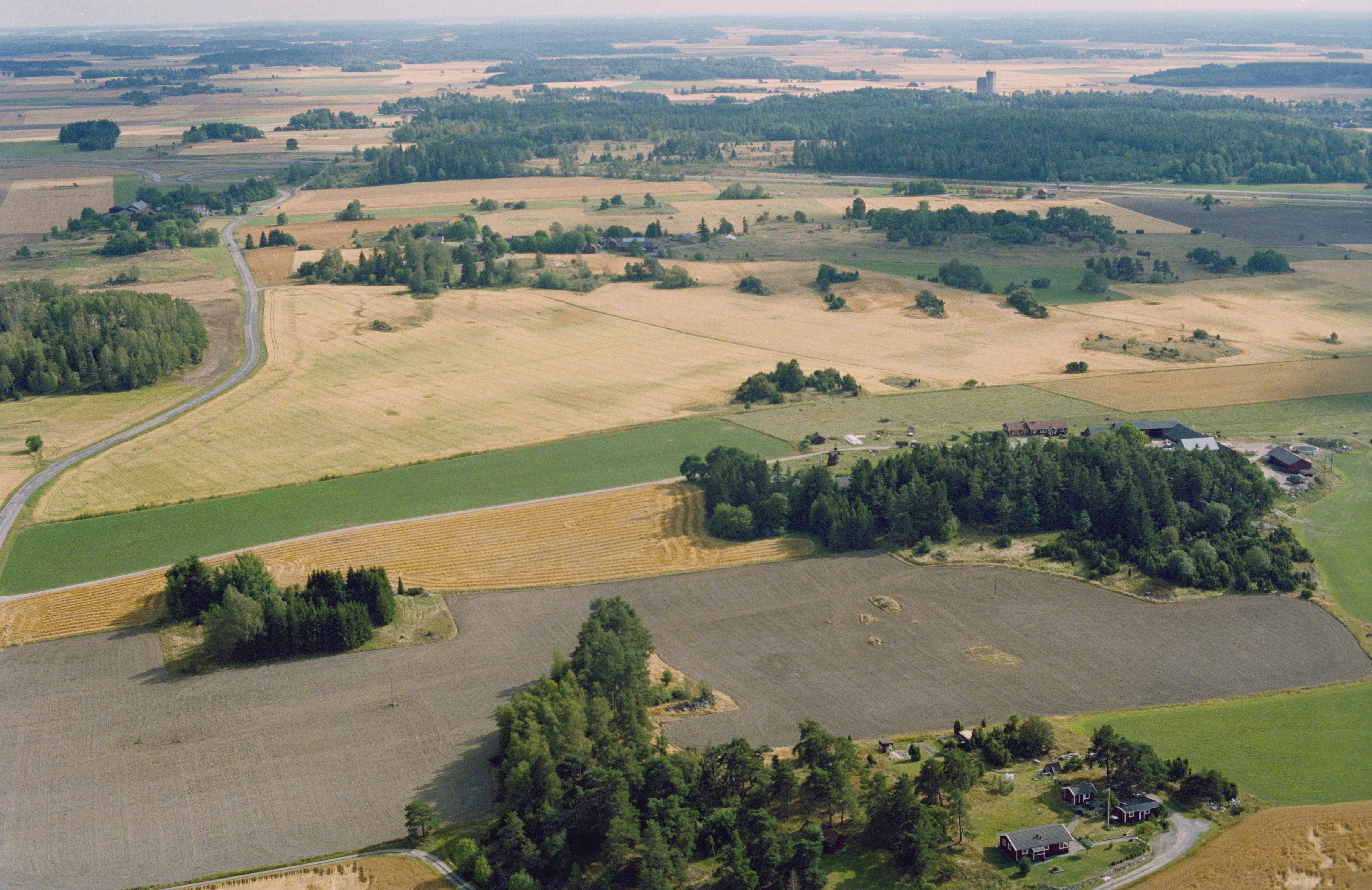 Beskrivning: Hummelsta gård i bildens nedre del. Gravfält RAÄnr Litslena uppe till höger. Bilden är tagen mot (väderstreck): SO