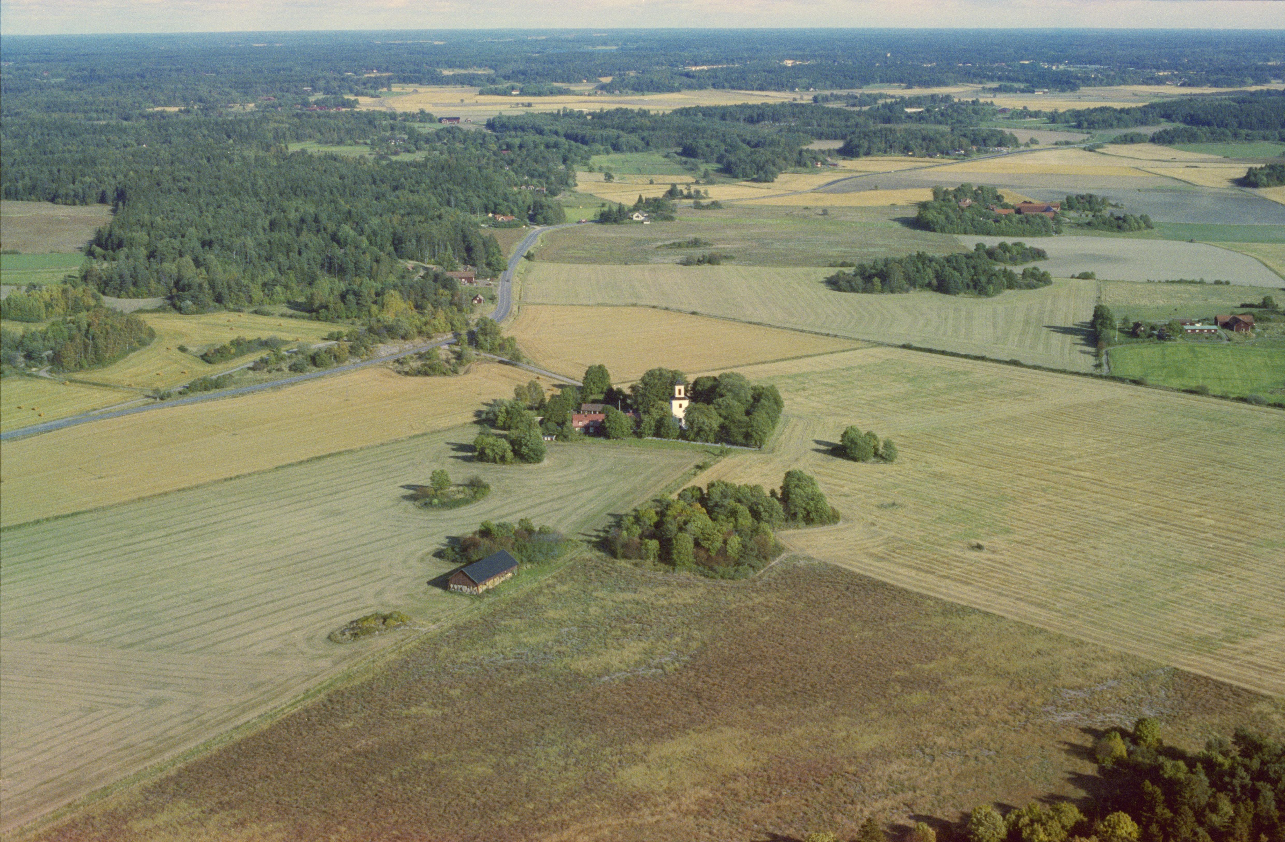 Beskrivning: Alsike kyrka vid bildens mitt. Till höger över bildens mitt Tuna by. Bilden är tagen mot (väderstreck): ONO