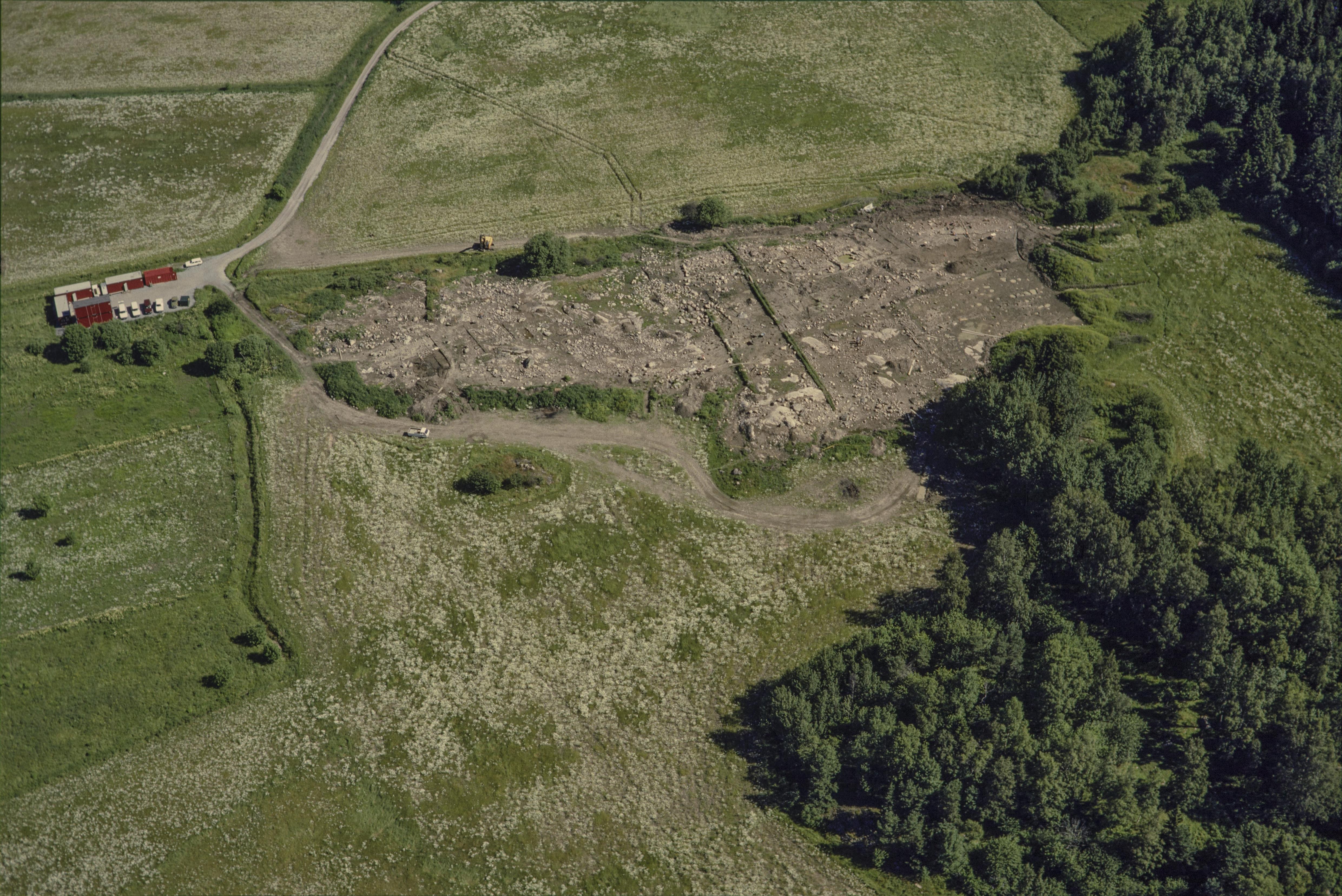 Beskrivning: Arkeologisk undersökning innan bygging av bostäder. Gravfält och boplatsområde RAÄnr Fresta 147:1. Bilden är tagen mot (väderstreck): NNO