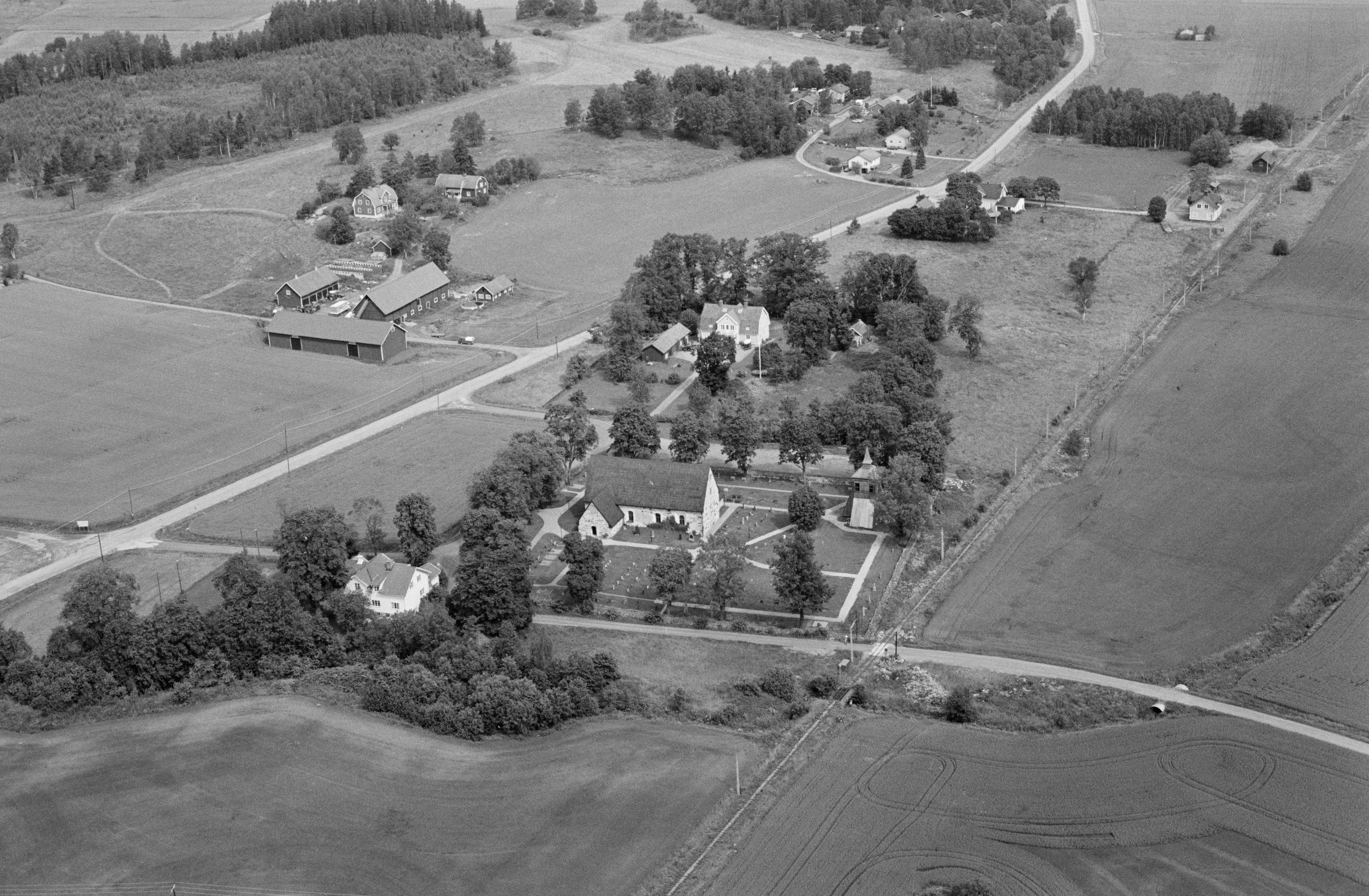 Beskrivning: Frösunda kyrka och kyrkby i Kyrkåns dalgång. Bilden är tagen mot (väderstreck): NV