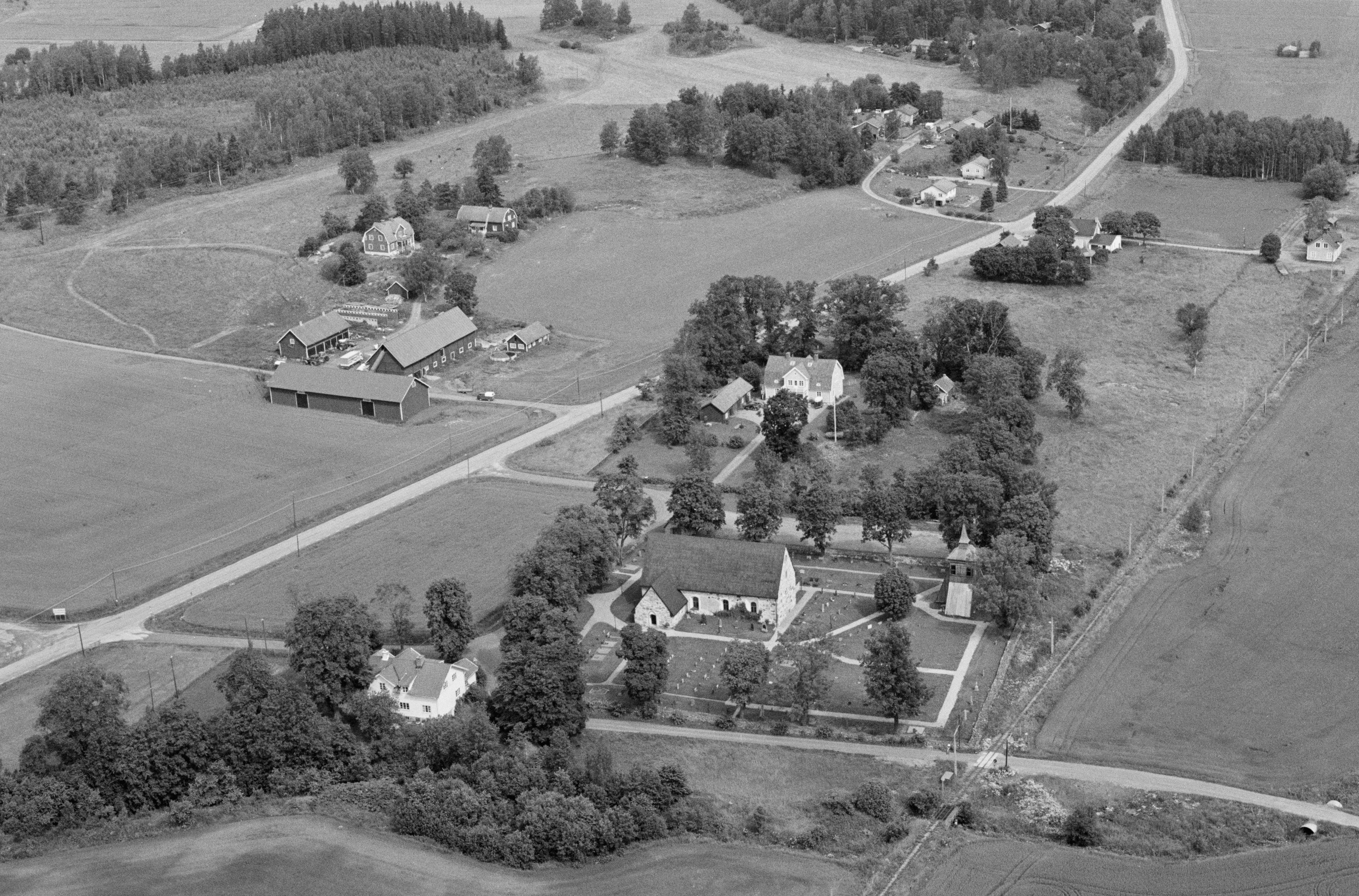 Beskrivning: Frösunda kyrka och kyrkby i Kyrkåns dalgång. Bilden är tagen mot (väderstreck): NV