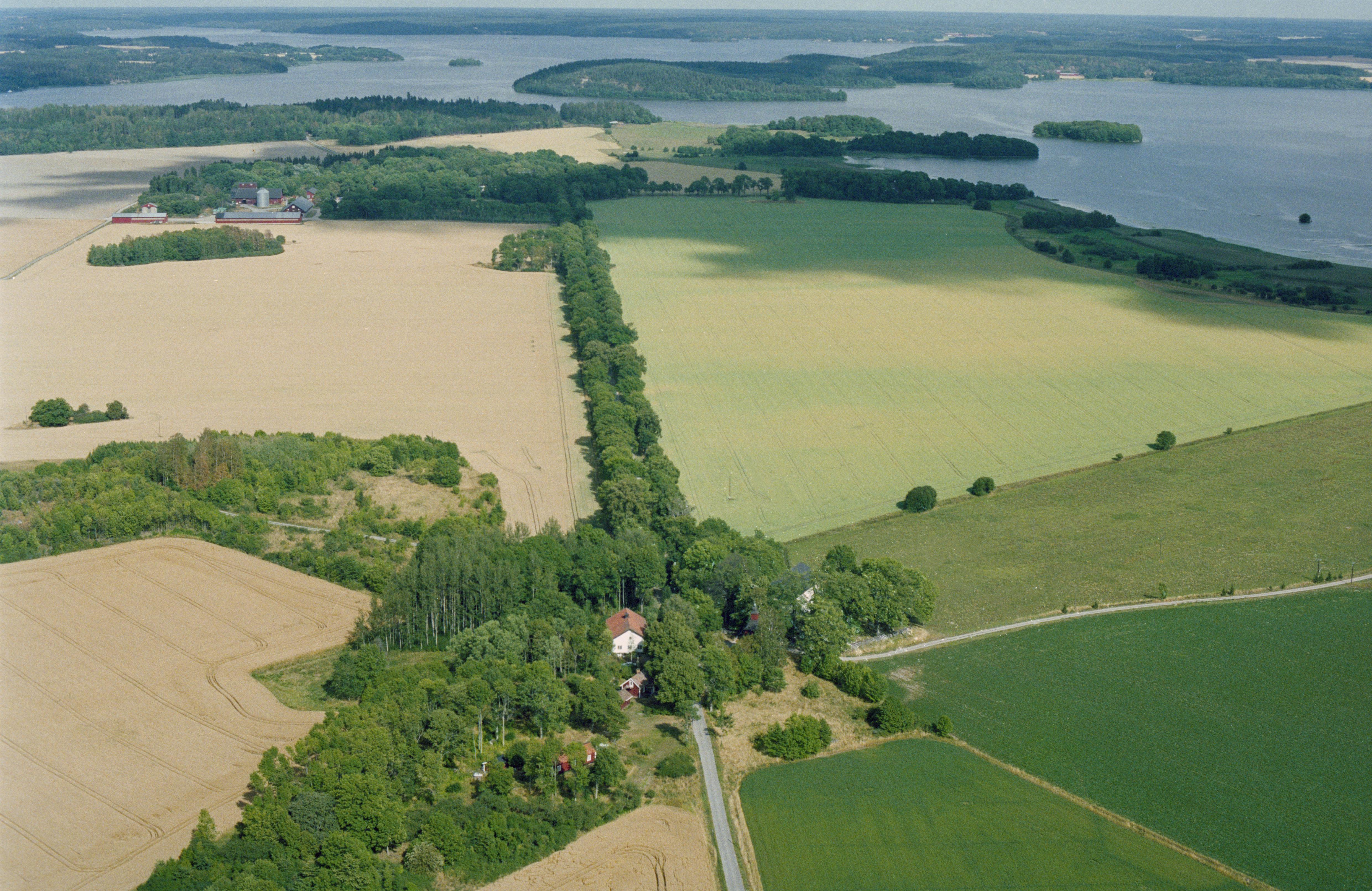 Beskrivning: Under bildens mitt Holms kyrka. Över bildens mitt allén mot Sjö slott (skrivs även Sjöö slott) RAÄnr Holm 8:1. I bildens övre del Gorran i Mälaren. Bilden är tagen mot (väderstreck): NO