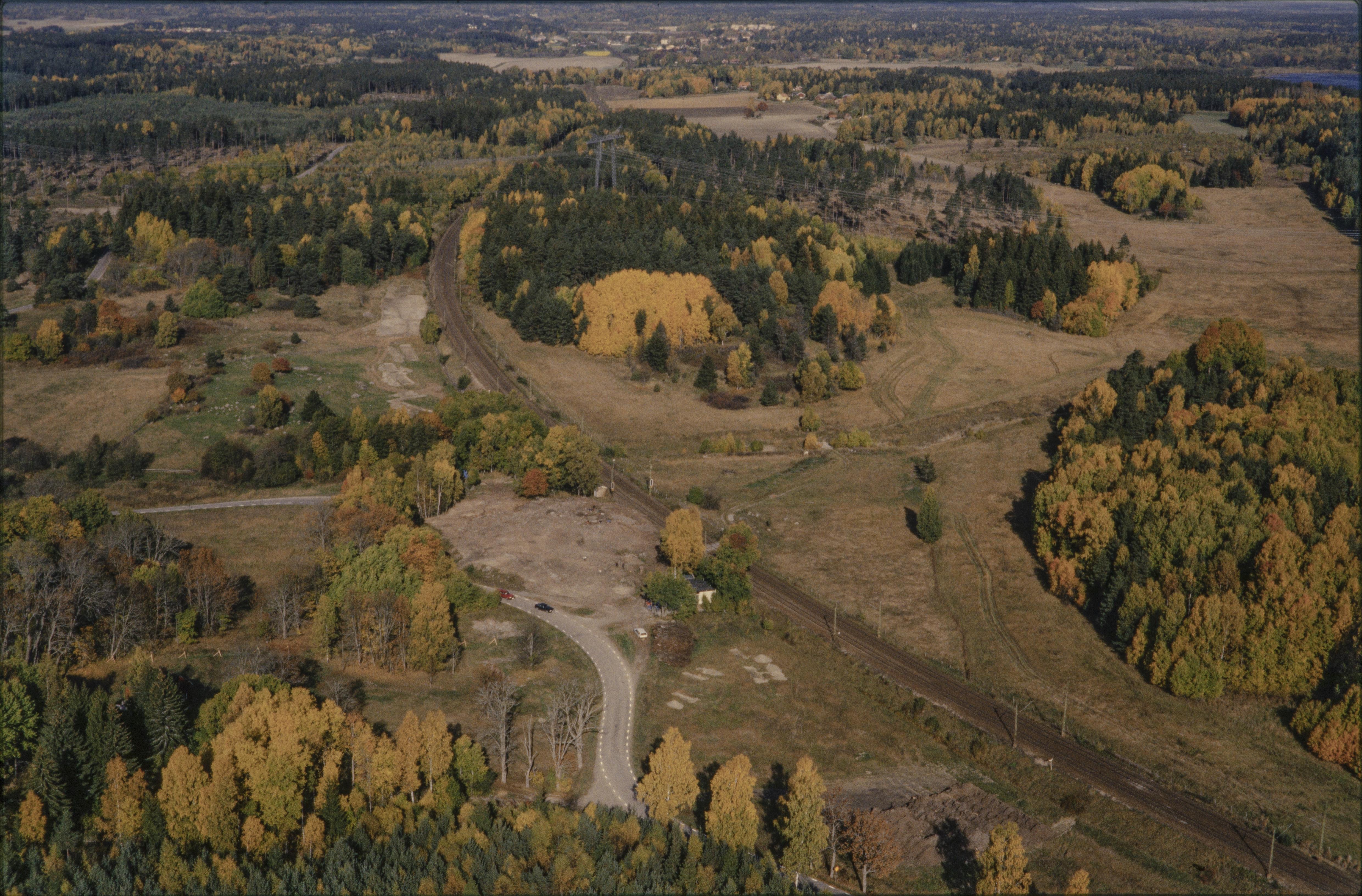 Beskrivning: Arkeologisk undersökning vid Forsby i Forsbyåns dalgång. Vid bildens mitt husgrund RAÄnr Knivsta 176:1 och stensättning Knivsta 189:1. Över bildens mitt gravfält RAÄnr Knivsta 126:1 med hällristningar Knivsta 269:1-9 m.fl. vid Grindstugan. Bilden är tagen mot (väderstreck): NNV