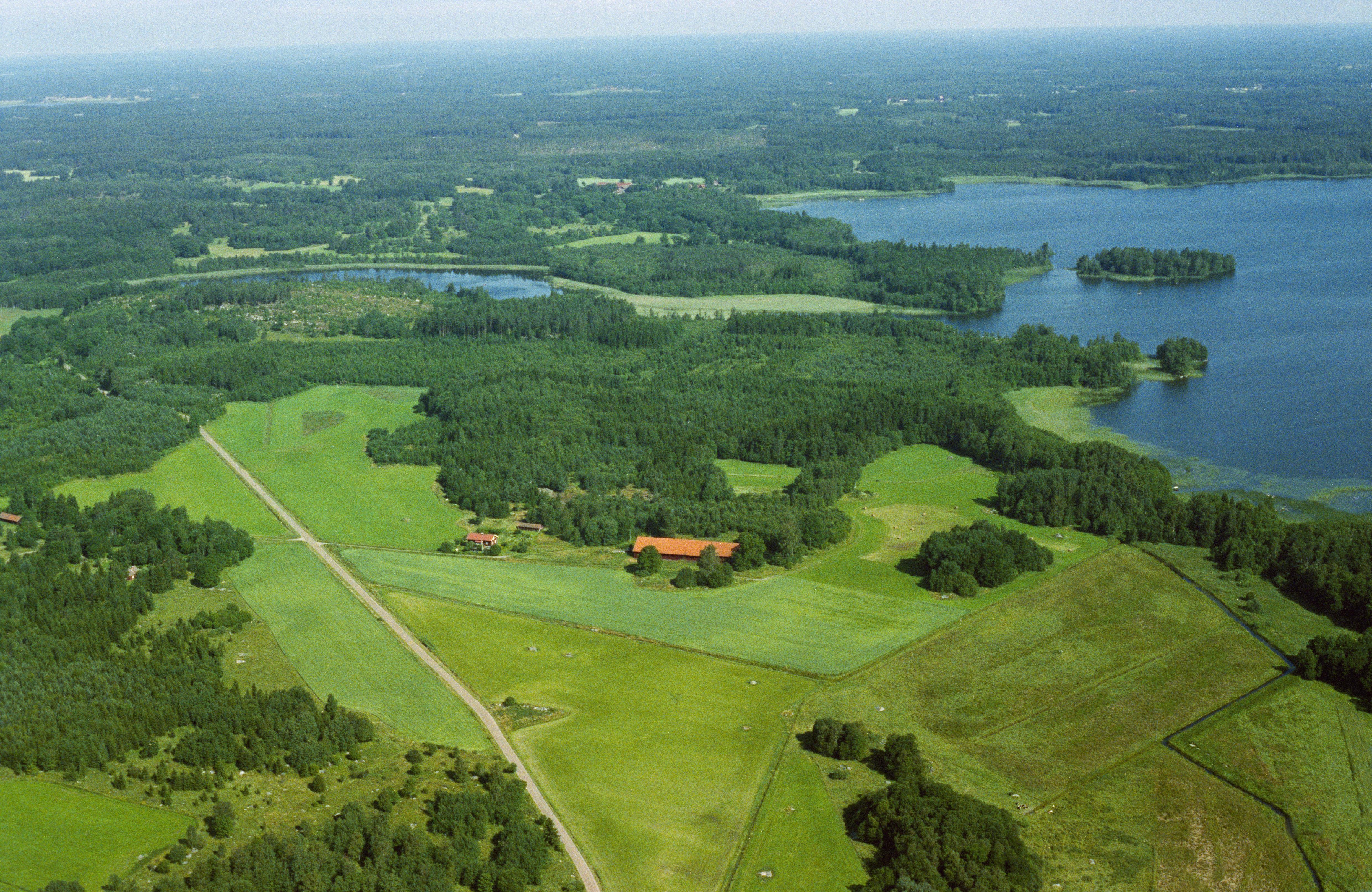 Beskrivning: Ebbarps by vid Långviken i sjön Erken. Bilden är tagen mot (väderstreck): NV