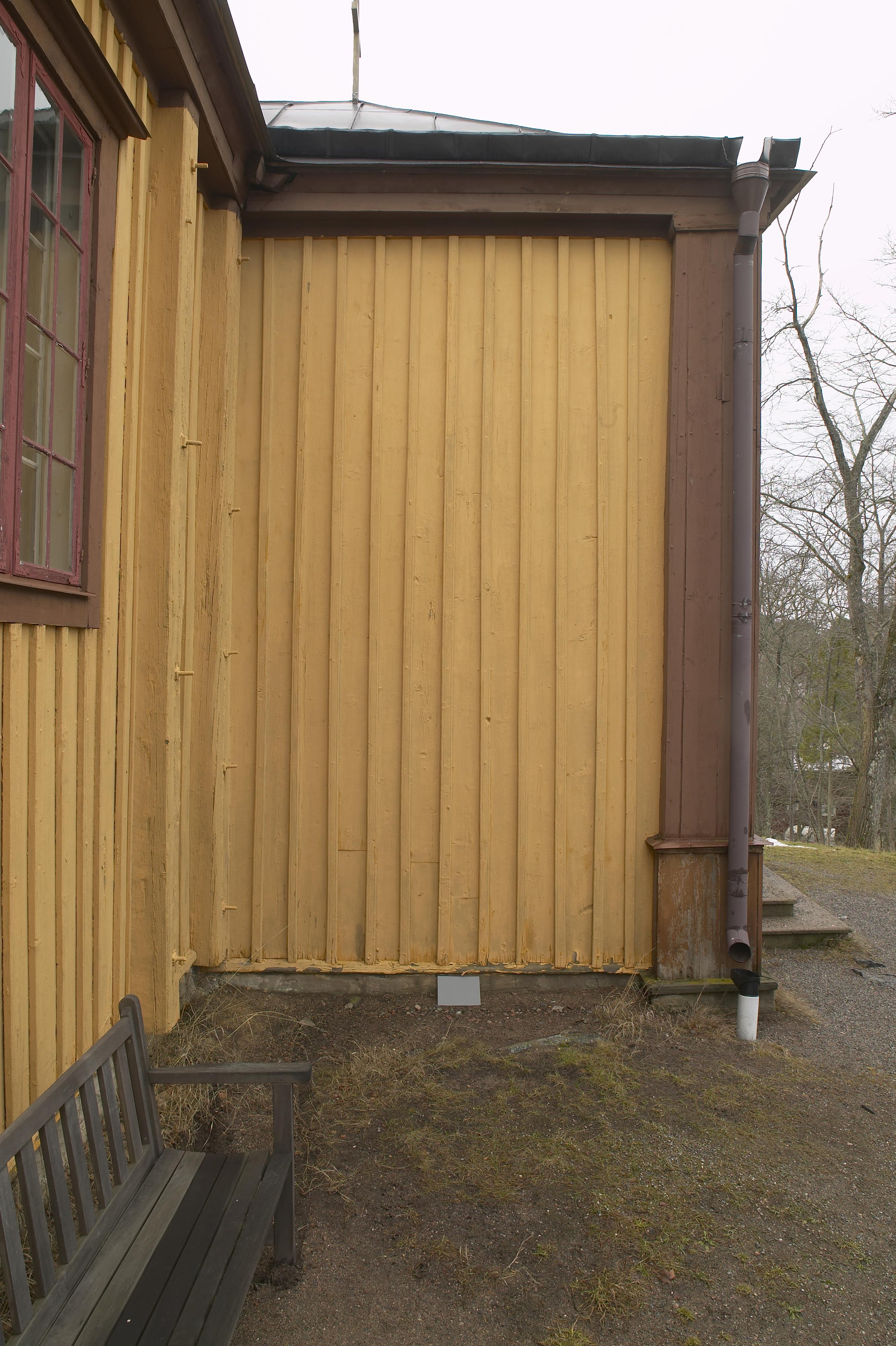 Beskrivning: Del av södra väggen samt vapenhusets västra vägg .