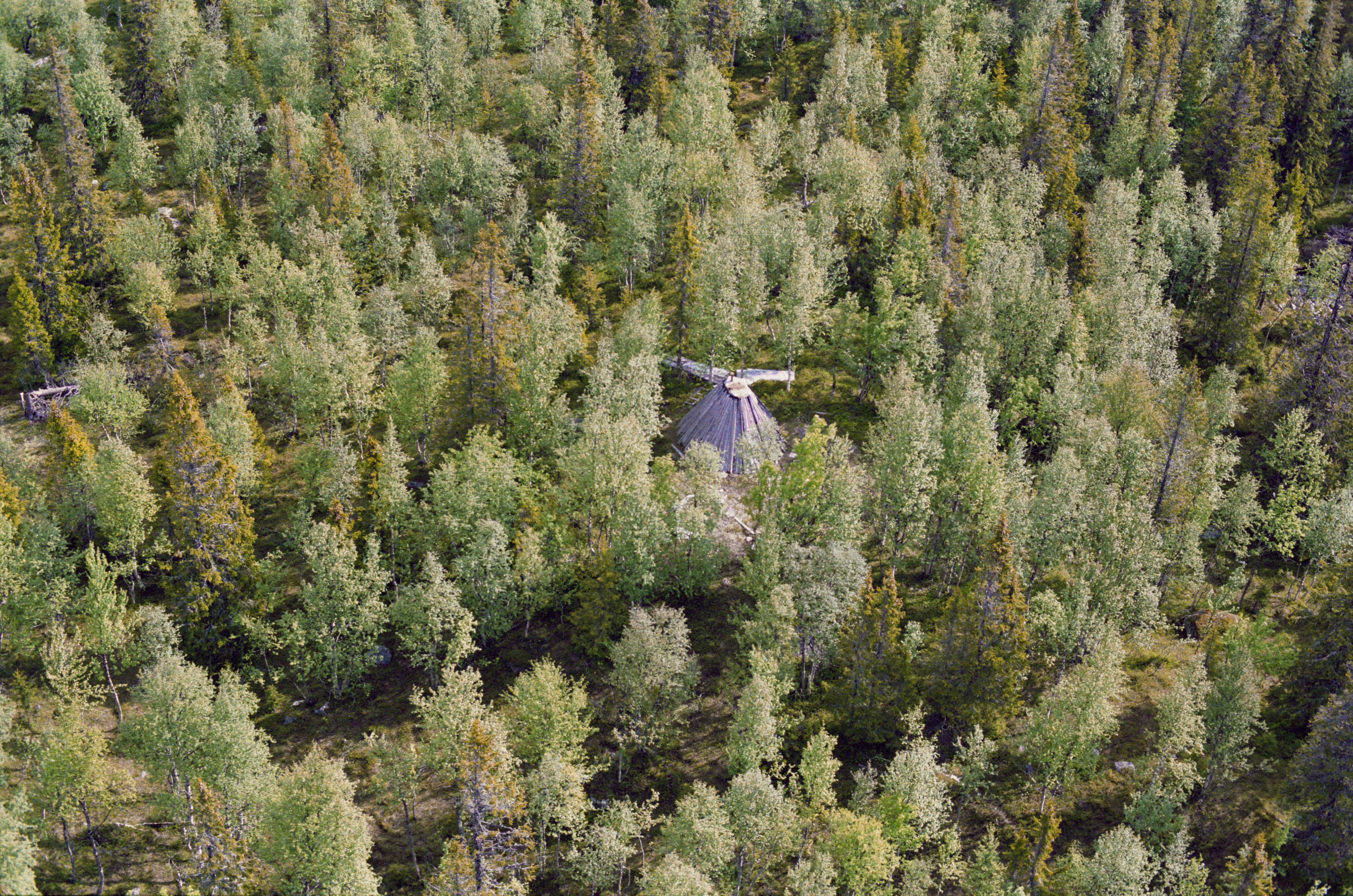 Beskrivning: Tomasvallen, ett f.d. sameviste med kåta (i bildens mitt) på västsidan av sjön Bijelite (Bielite / Bijjie Lijhtie). Vistet med fossil åker RAÄnr Vilhelmina 1056:1-5 och 1219:1 ingår i Njakafjälls naturreservat. Bilden är tagen mot (väderstreck): NO