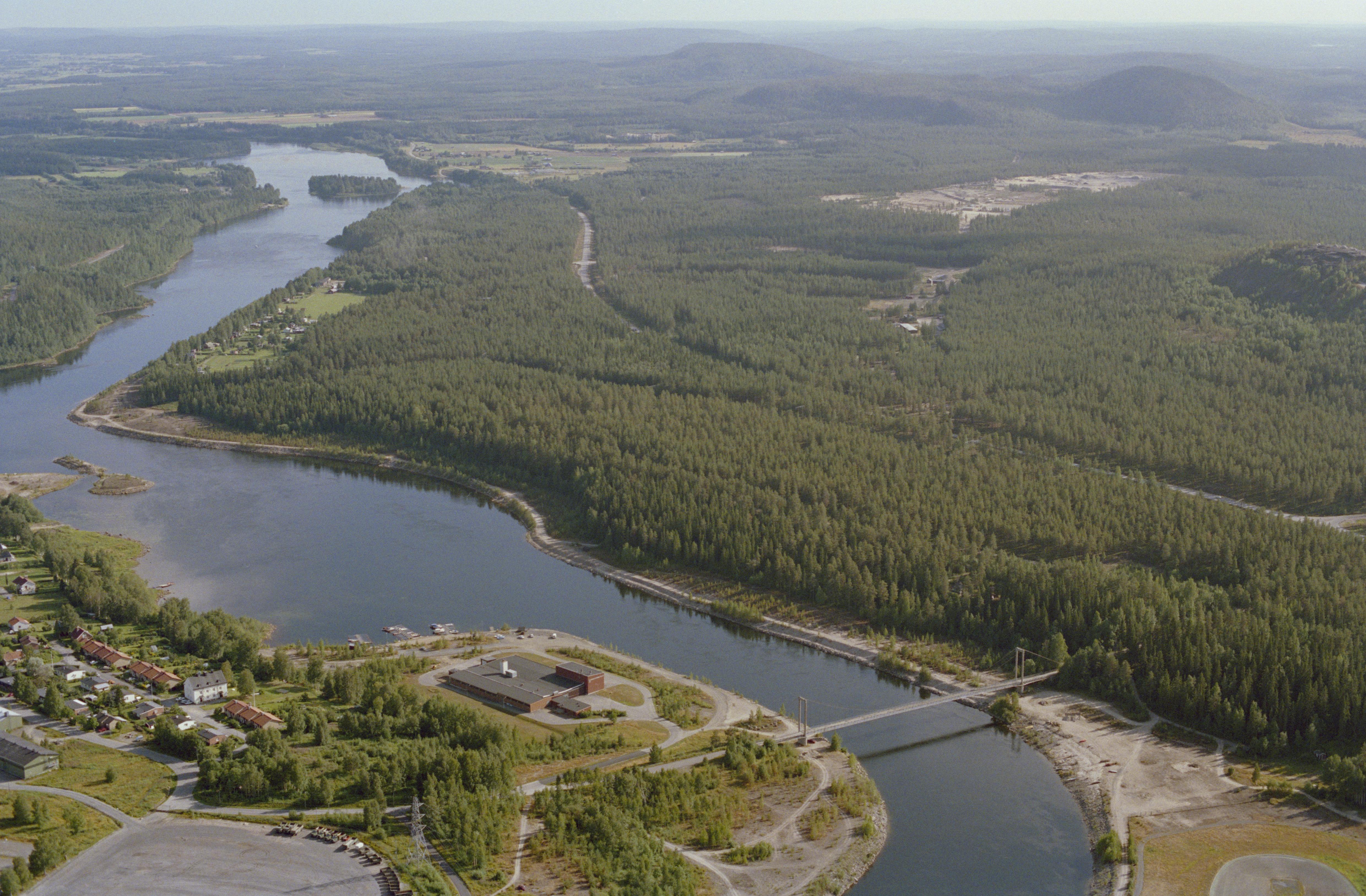 Beskrivning: Luleälven vid området Bodsvedjan i västra delen av tätorten Boden. Byggnadsminnet "Engelska kanalen" RAÄnr Överluleå 71:1 i skogen vid bildens mitt. Bilden är tagen mot (väderstreck): SV
