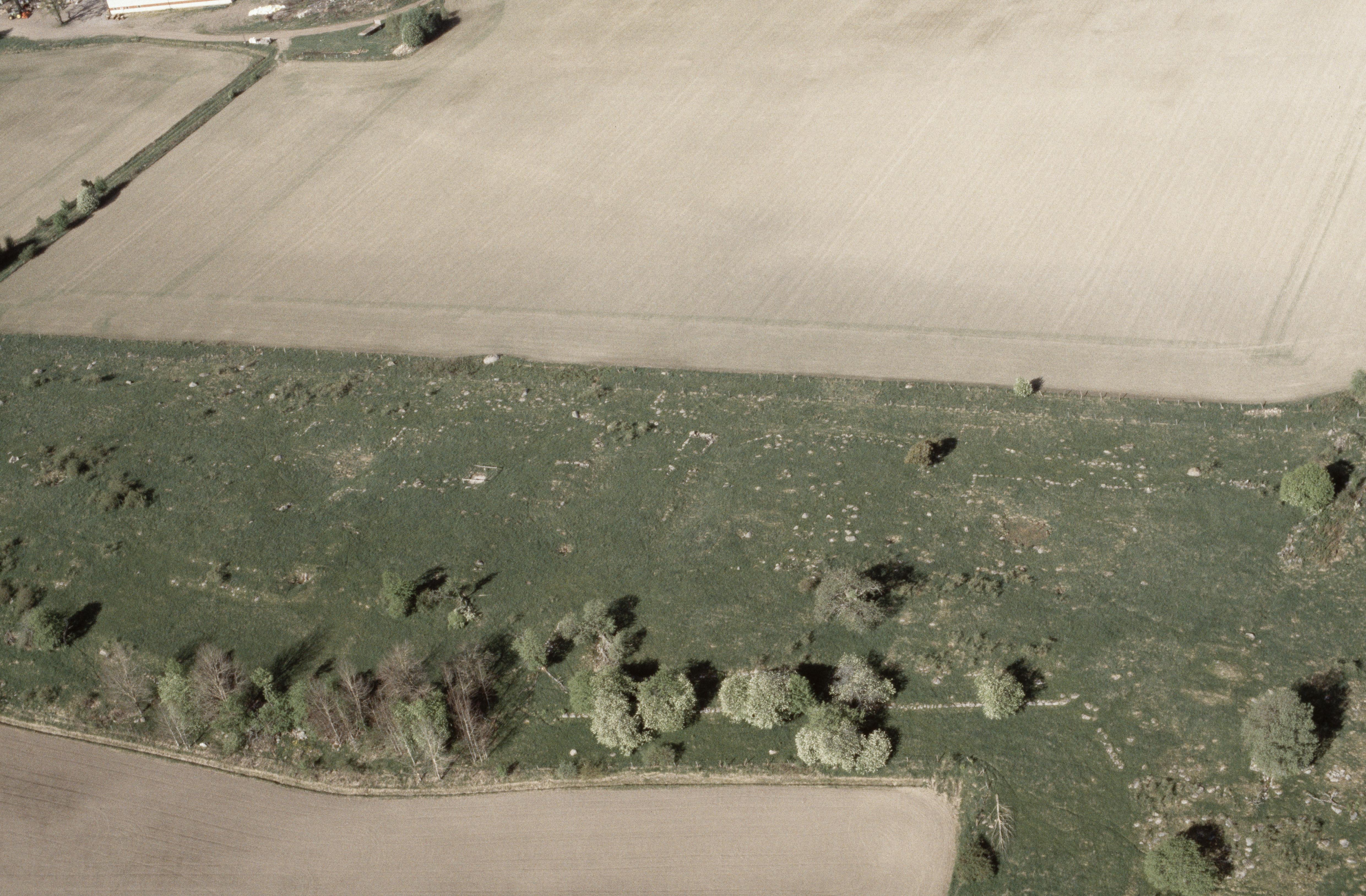 Beskrivning: Drumlinområde. Tjugesta gamla tomt RAÄnr Hackvad 34:1. Här låg under medeltiden ett trettiotal byggnader. Bilden är tagen mot (väderstreck): V
