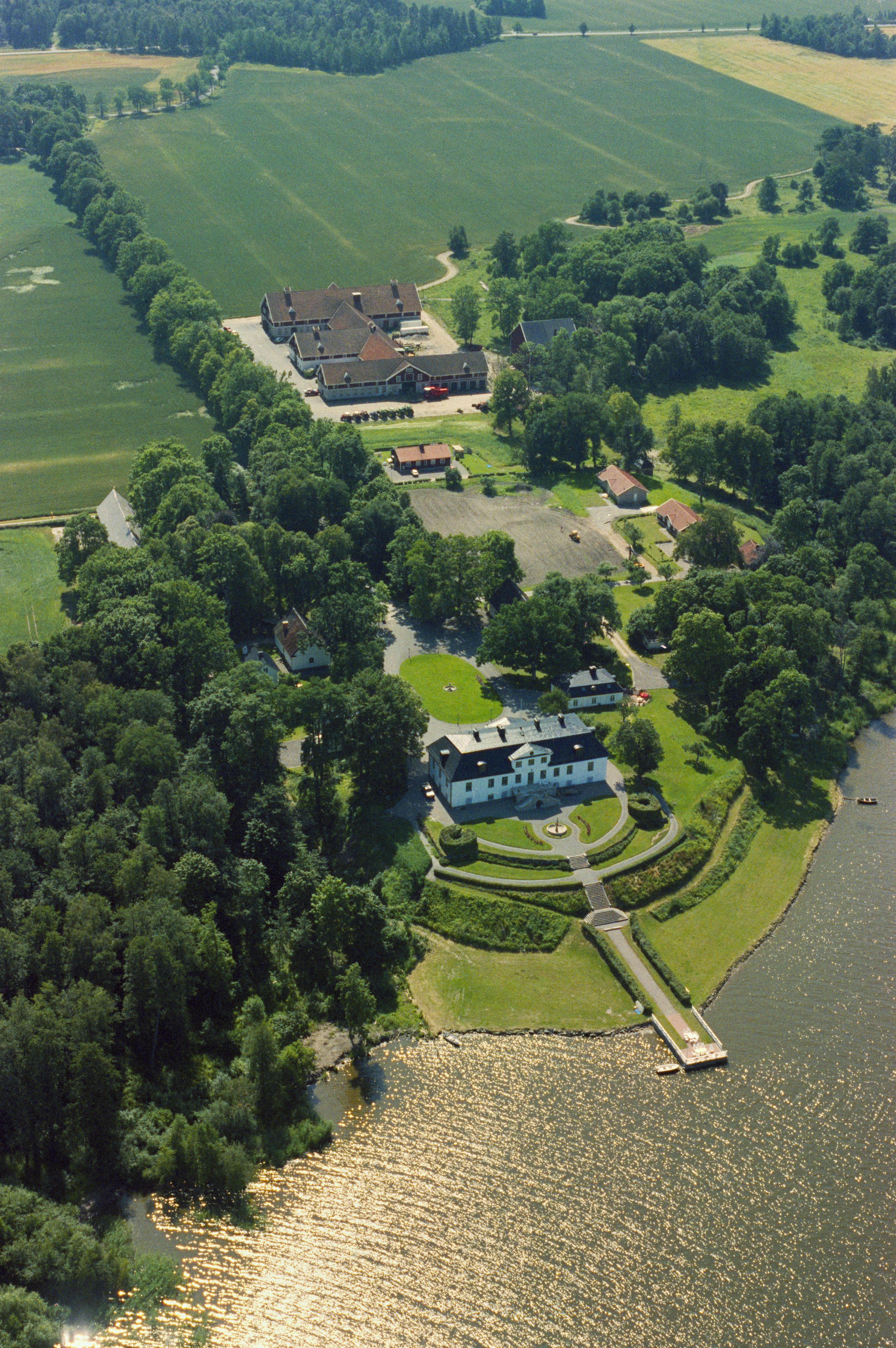 Beskrivning: Hjälmarsbergs herrgård RAÄrn Örebro 68:1 vid sjön Hemfjärden. Bilden är tagen mot (väderstreck): SV