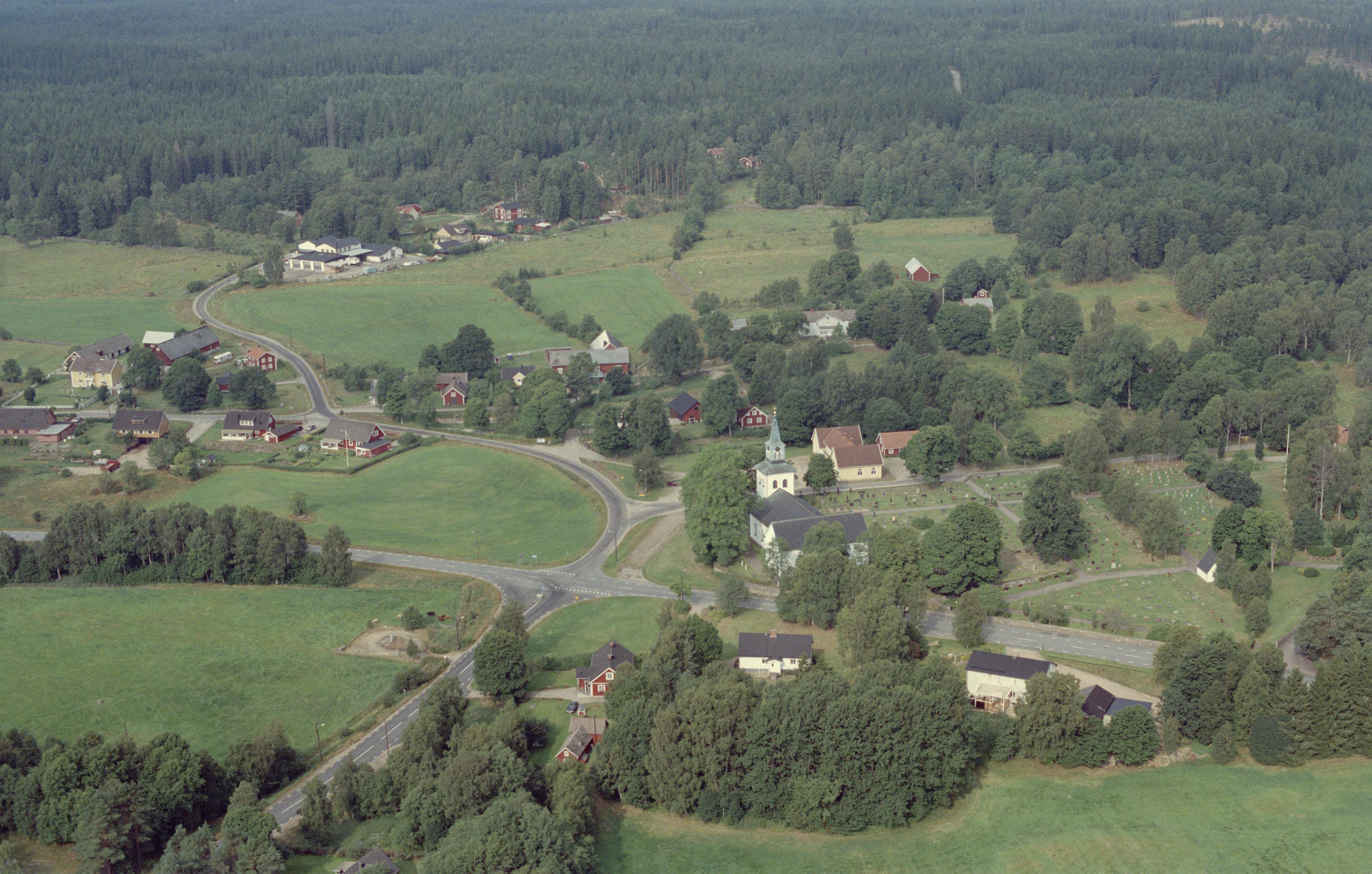 Beskrivning: Loshults kyrka och kyrkby. Bilden är tagen mot (väderstreck): NV